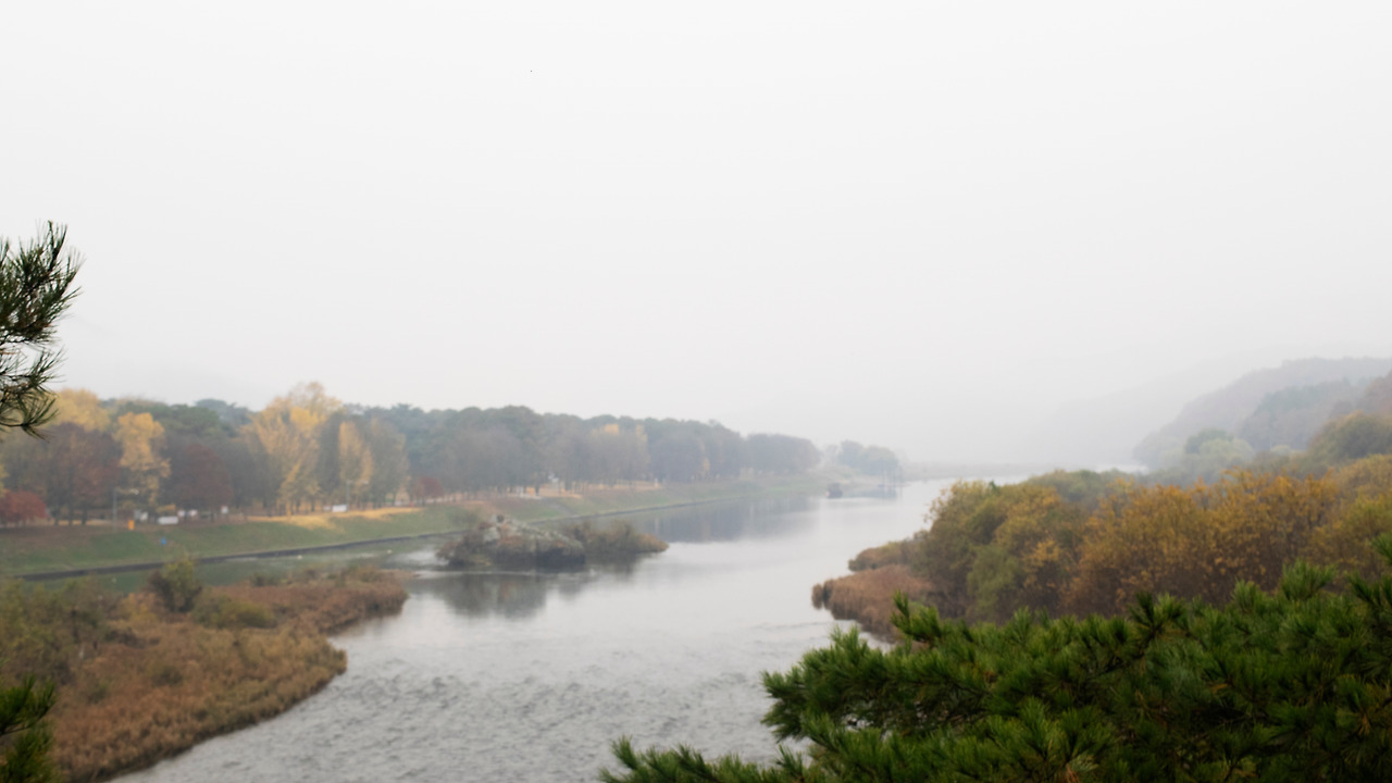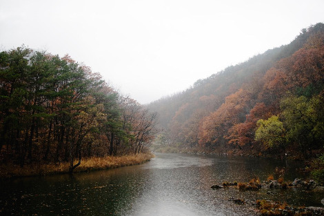 하늘의 선녀가 내려와 목욕하였다는 이야기의 ‘2경 강선대’에 올라갔다. 물과 바위와 소나무가 어우러져 삼합이 이루어지는 곳이라고 한다. 가을 부슬비와 살짝 내려온 안개가 지금 당장이라도 선녀가 내려올 것 같은 몽환적 분위기를 연출하고 있었다. 가을날의 동화 같은 분위기가 느껴지는 11월의 금강 변이다.