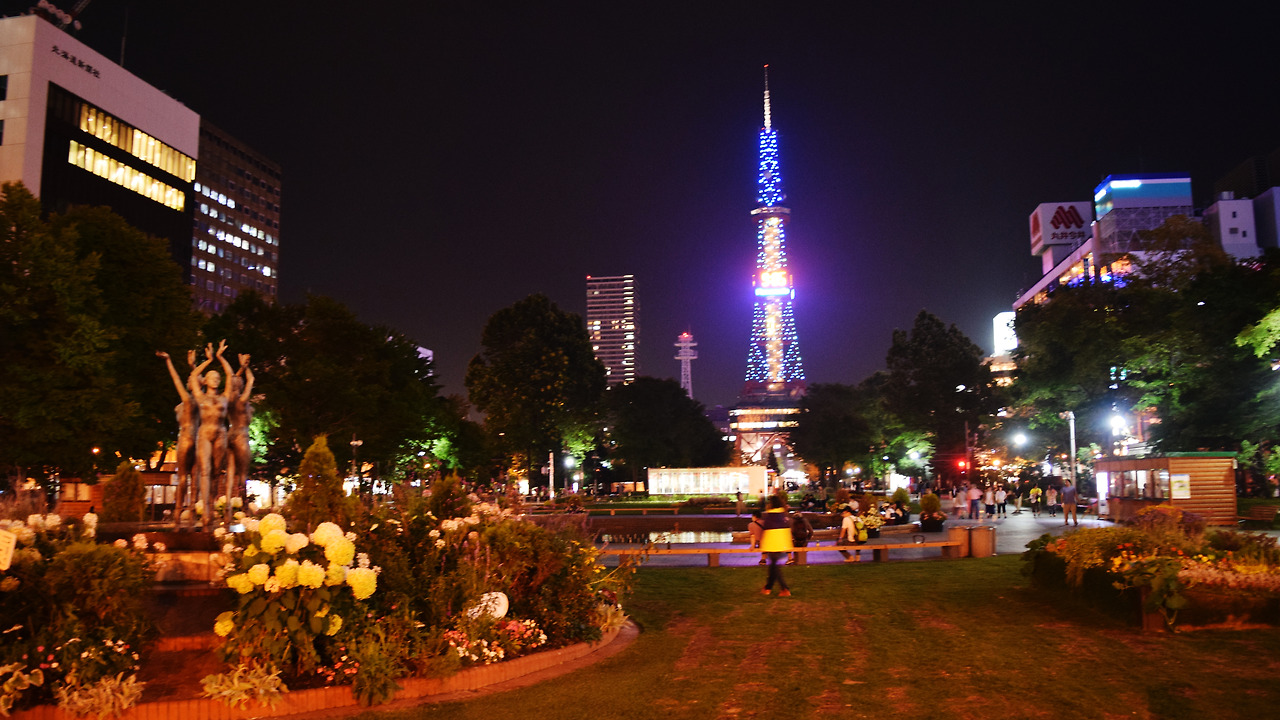 라멘으로 저녁 식사를 한 후 각종 상점과 빌딩들, 네온사인, 트램 등 삿포로의 도심 야경을 즐기면서 다시 오도리 공원으로 돌아왔다. 공원 지하 공영 주차장에서 나와 삿포로의 야경을 높은 곳에서 감상할 수 있다는 “모이와야마 전망대”로 갔다.