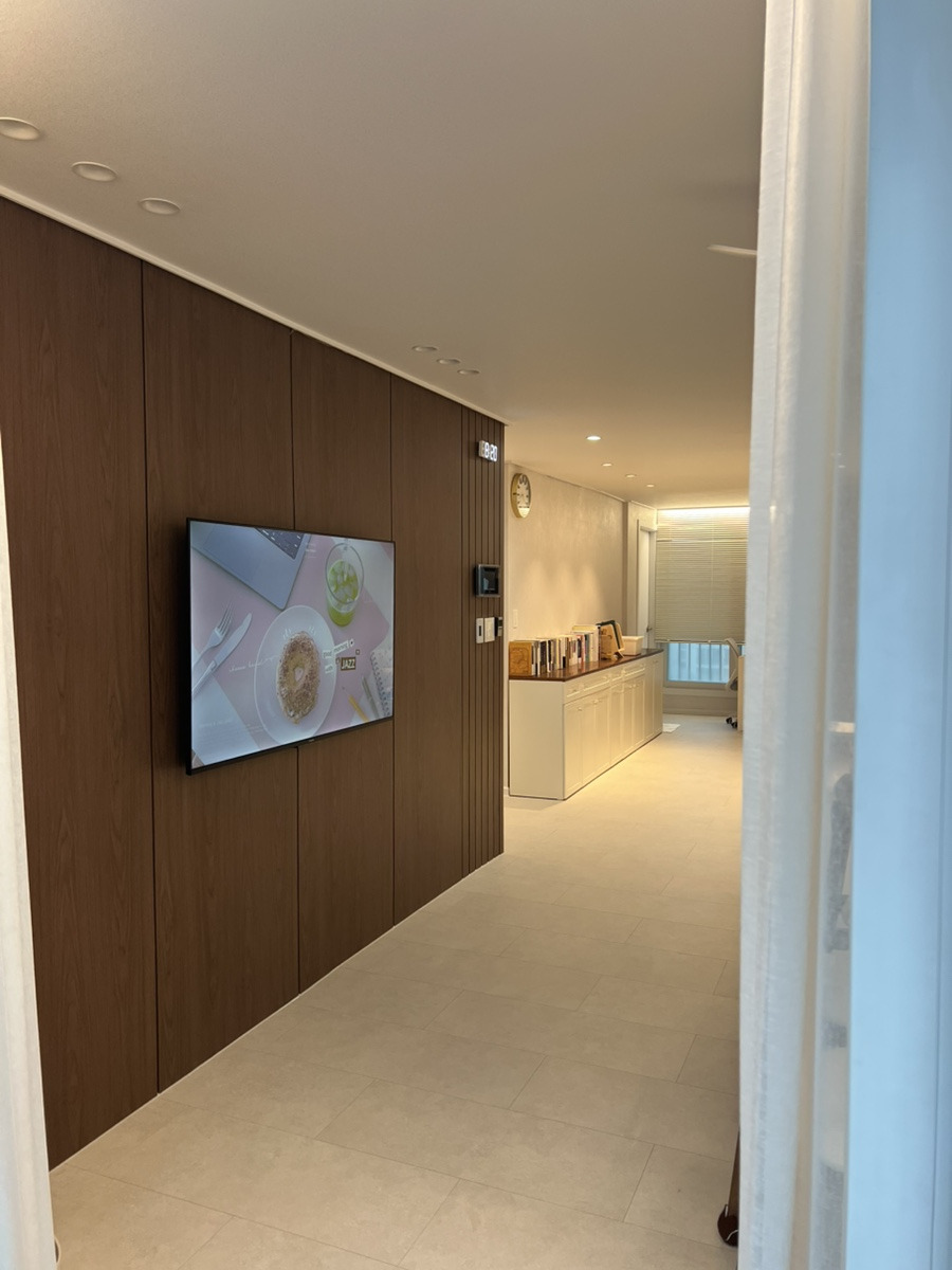 특히 중문과 아트월에 입힌 색채는 나의 확고한 취향이 반영된 '월넛'이었다. 혹자는 유행이 지난 올드한 컬러라고 했지만, 월넛만이 가진 묵직한 따뜻함과 고급스러운 감성은 우리 집의 중심을 단단하게 잡아주었다. 유행을 좇기보다 나의 감각을 믿었던 선택은 옳았다. 월넛의 깊은 색감은 집 전체에 적당한 무게감을 실어주며 월넛만이 지닌 고유한 감성은 그 어떤 컬러도 따라올 수 없었다.