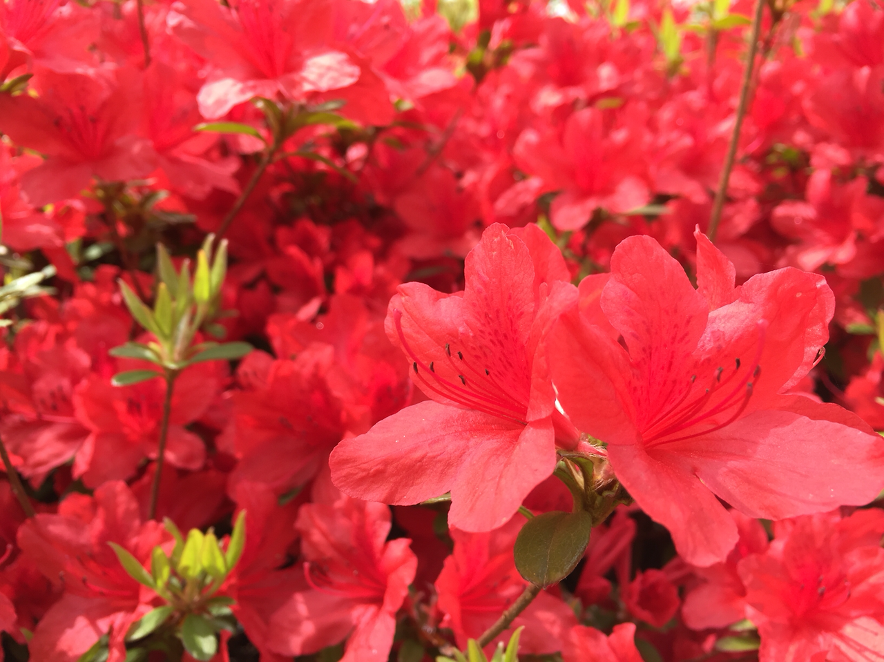 초록색 잎과 함께 피어나는 철쭉은,