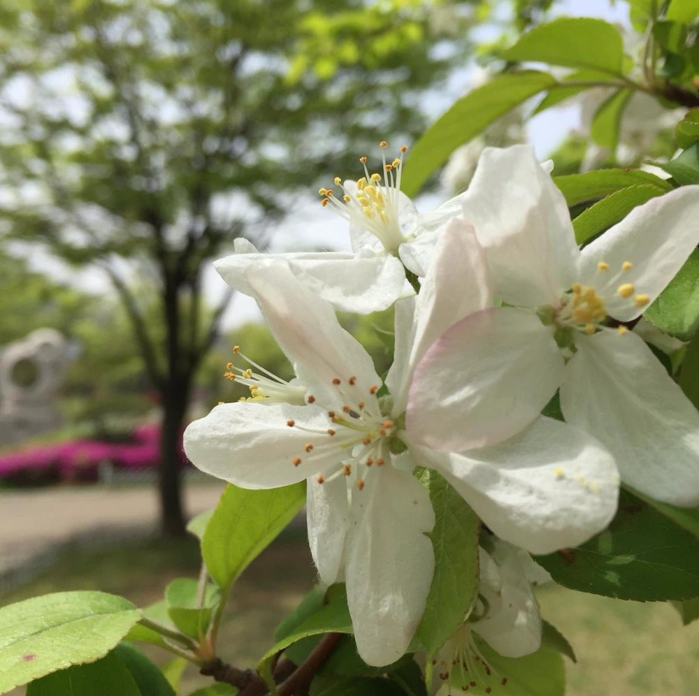 여기에 아파트 단지와 공원에서 자주 볼 수 있는 꽃이 꽃사과나무 꽃이다.