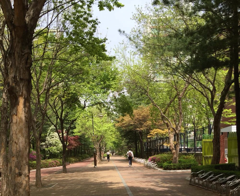 공원 길에도 연두빛 잎이 초록으로 짙어가고 있다.