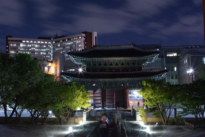 홍화문과 서울대병원 건물이 화려한 불빛으로 시선을 끌었다.