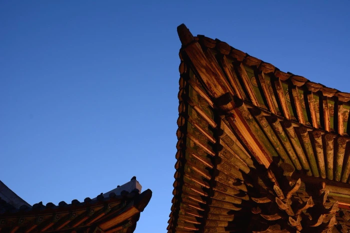 푸른 하늘은 고궁의 단층 색을 더욱 화려하게 드러내 주는 것 같다.