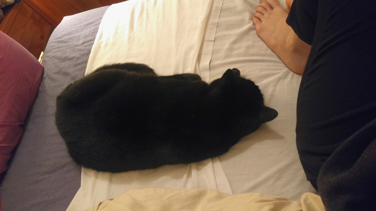 이 집엔 고양이 한 마리가 살았다. 새미처럼 검은 고양이였다. 종일 시내를 구경하고 돌아와 씻으려 하는데 내가 복도로 나온 틈에 야옹야옹 하며 내방으로 쏙 들어갔다. 그러더니 성큼 전기장판을 틀어놓은 침대 위로 올라앉았다. 내보내려 문을 열었지만, 원래 자기 자리였는지 나가질 않았고 복도의 찬바람을 계속 들여놓을 수 없어 문을 닫았다. 그런데 이 녀석, 내가 낯설지도 않은지 본격적으로 네 다리를 쭉 펴고 엎드린다.