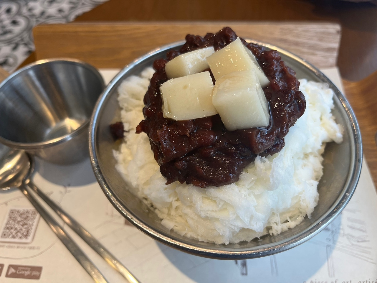 부드러운 우유 얼음 위에 국산 팥이 알알이 살아 숨 쉬듯 놓여 있었다. 저 영롱한 빛깔의 떡을 보라.