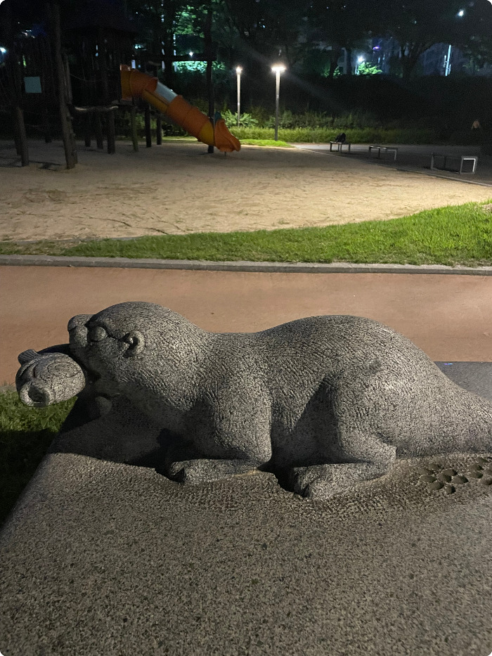 조금 더 걸어 올라가니 물고기를 문 수달 조각상이 보였다.