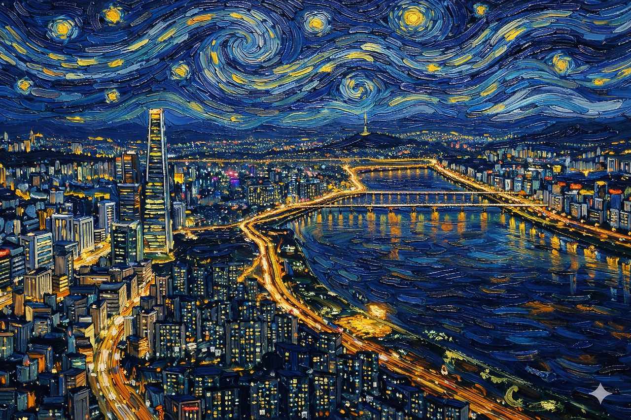 통유리 너머로 촘촘히 박힌 불빛들이 보석처럼 빛났고, 정갈하게 세팅된 테이블 위에는 은은한 촛불이 일렁였다. 도진이 미리 예약해둔 창가 자리. 이수는 조심스럽게 의자에 앉아 창밖을 보았다. 한강은 가느다란 띠 같았고, 도로는 붉은 혈관처럼 보였다. 드디어 동경하던 자리에 앉았다는 고양감이 이수를 감쌌다.