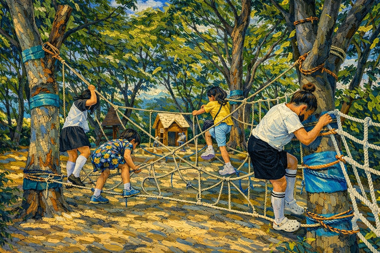 "자, 지금부터 대장은 나다. 근데 부대장은 너희들이야. 다연이가 서윤이 맡고, 다은이가 도윤이 챙겨. 서로 손 놓치면 대장한테 혼난다!"