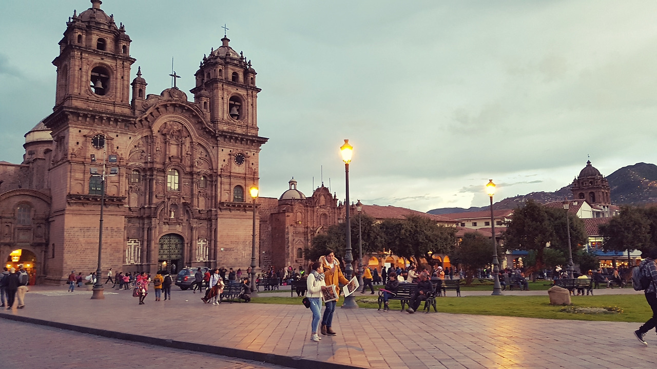 었는데도 머리가 아프지 않은게 신기할 정도였다. 도착한 전망대에서 쿠스코의 붉은 지붕들과 구름이 만들어 내는 풍경을 보니 탄식이 터져나왔다. 이 아름다운 쿠스코를 못보고 방에만 있었다면 얼마나 아쉬웠을까 하고. P에게 절이라도 하고 싶은 심정이었지만 맛있는 저녁을 쏘는 걸로 대신하기로 했다. 저녁을 먹고 다시 온 아라미스 광장에 가로등 불빛이 하나둘 켜지기 시작했다.