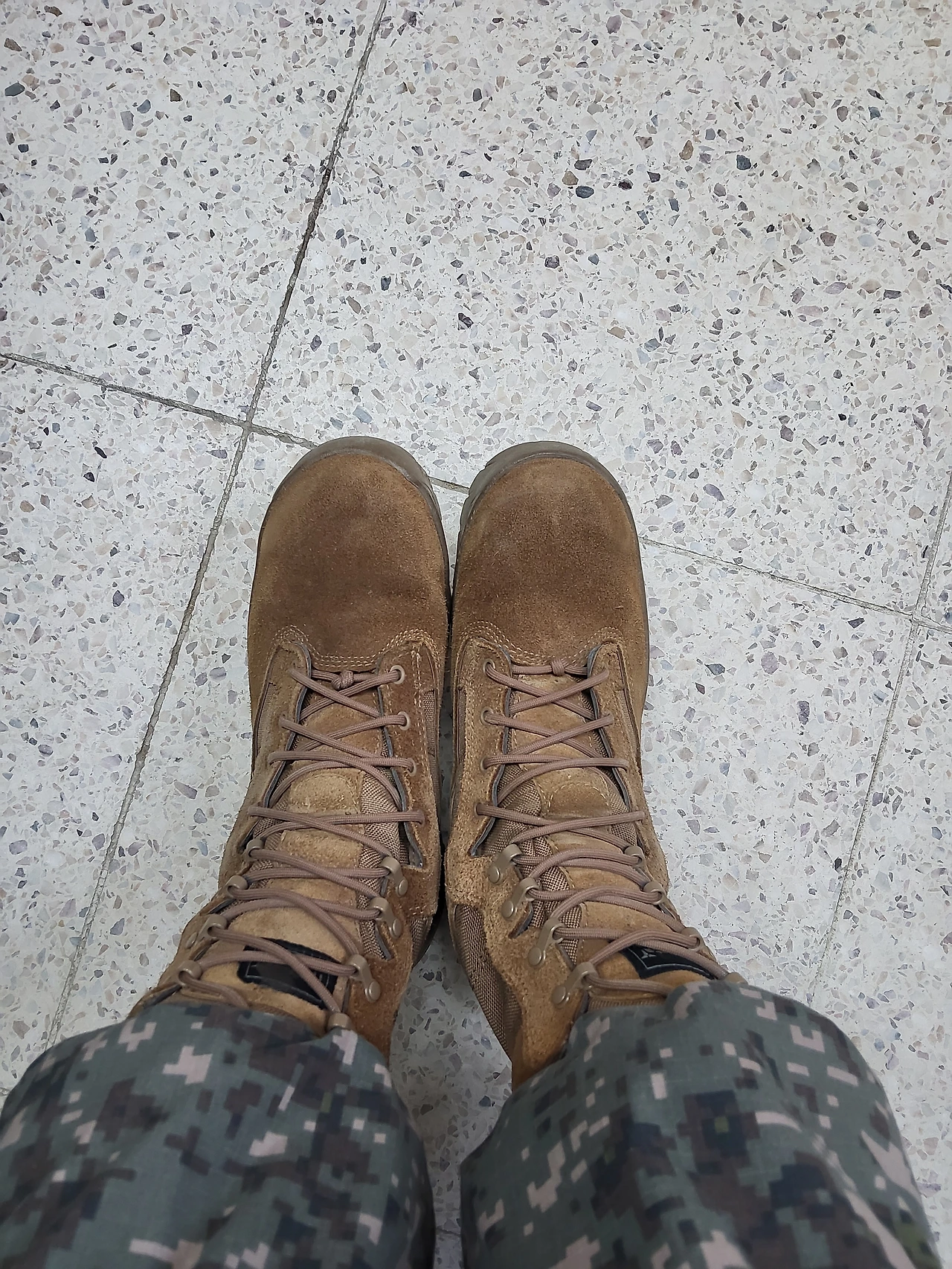 군생활 3개월도 안된 이병의 전투화가 매우 지저분했다.