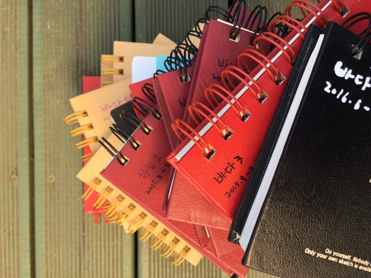 이 세 가지 중에 내가 가장 즐겼던 것은 기록자의 삶이었는데 하다 보니 그 결과물이 작은 스프링 노트로 17권, 크고 작은 종이에 따로 그린 그림이 90여 개가 모였다.