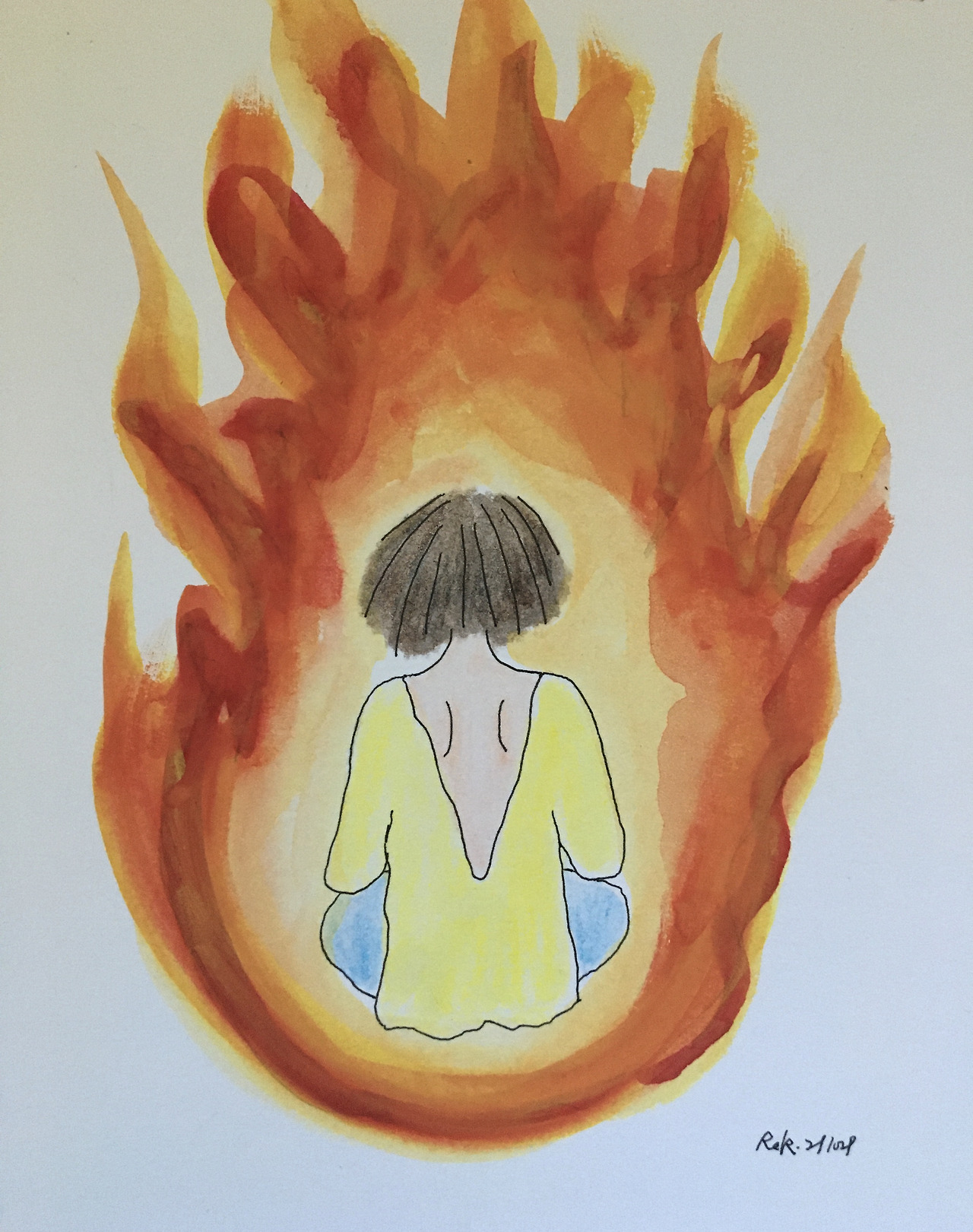 가슴 중앙의 반대편 척추를 딱 뜨니 열이 등판 전체와 양쪽 팔과 손가락 끝까지 순식간에 퍼져나갔다. 도무지 믿기지 않는 열이었다. 눈알이 튀어나올 만큼 강력한 열이었다. 이글이글 활활 타는 불덩이가 몸 안으로 들어갔는데 신기하게 피부는 멀쩡했다. 양쪽 겨드랑이에서 땀이 콸콸 흐르고 얼굴과 귀가 벌게지고 딱 벌어진 입이 다물어지지 않았다.