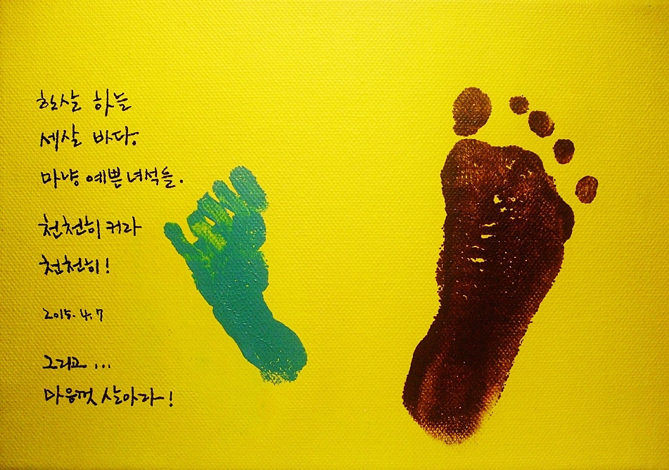 '아이들 발이 더 커지기 전에 남겨야지!'