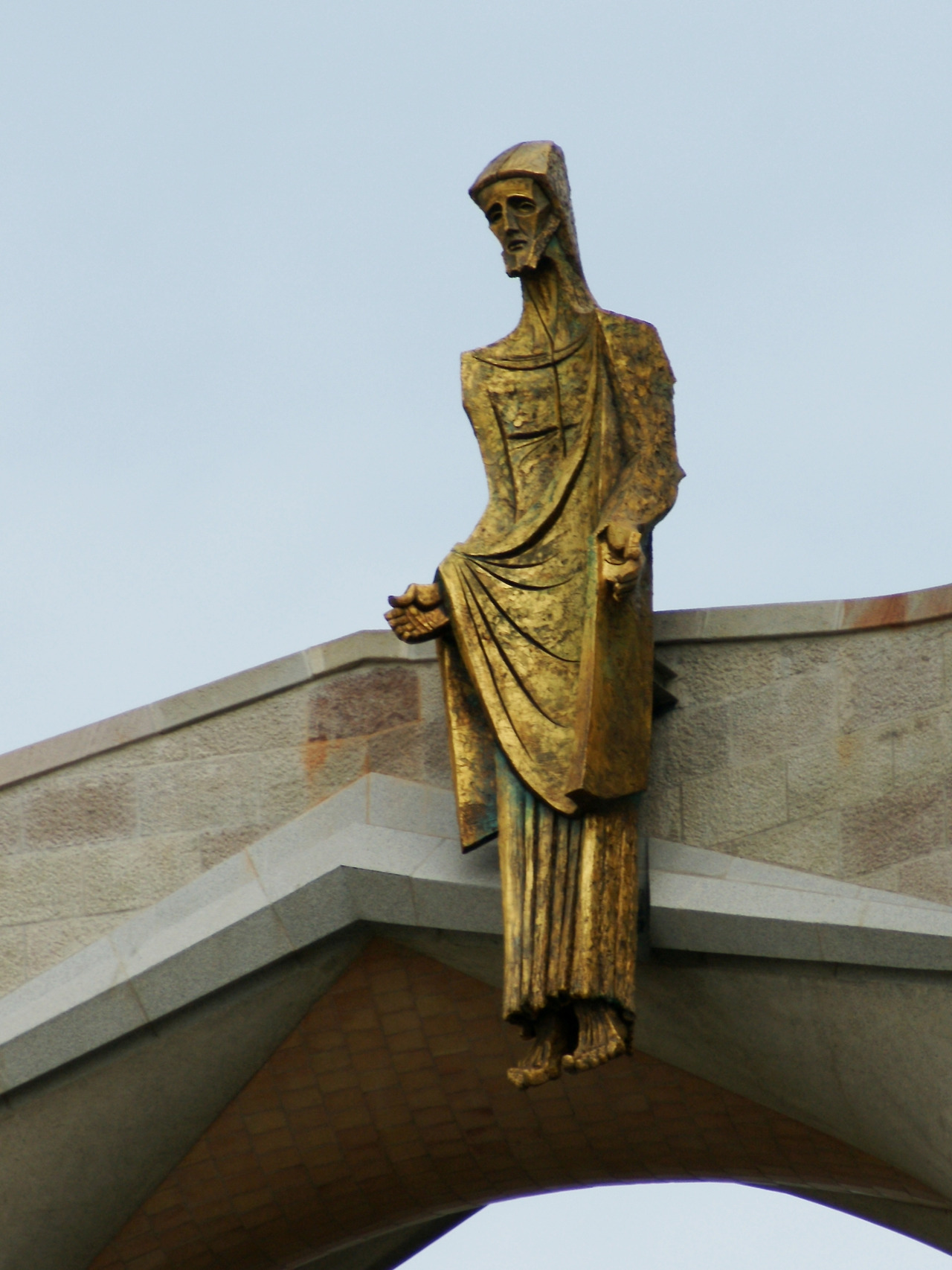 "그것은 가우디입니다. 70대 시절의 가우디를 예수를 바라보는 방향으로 조각한 것이죠."