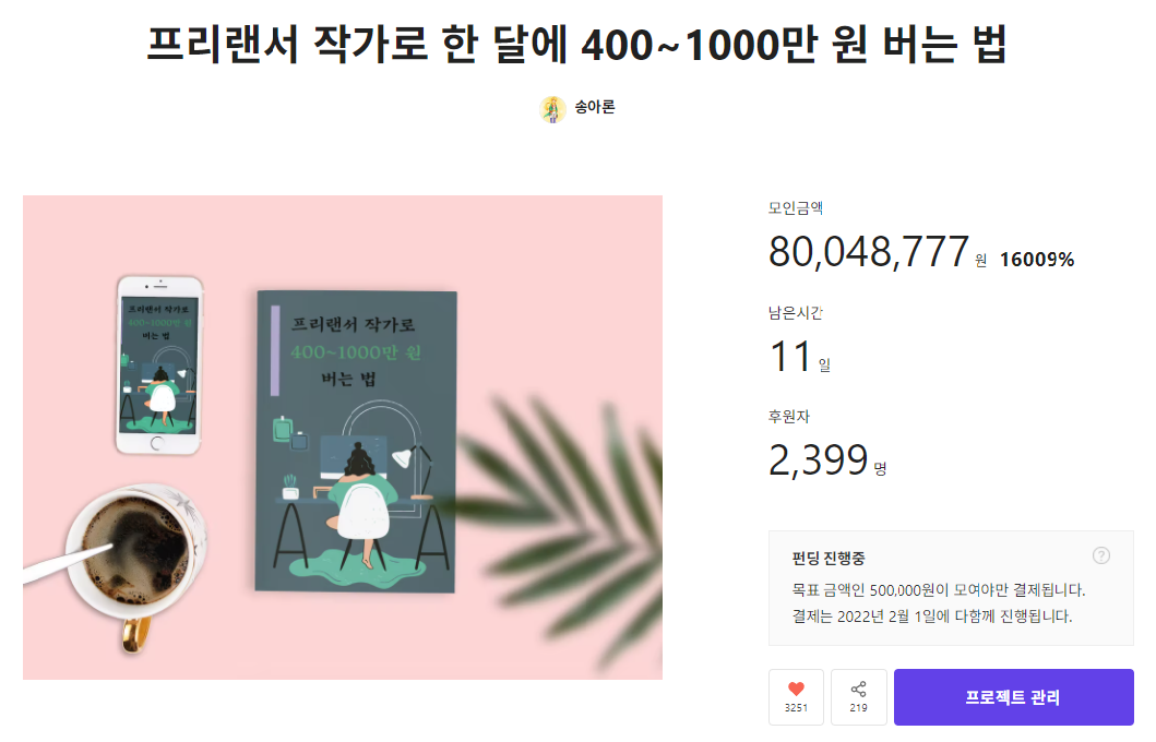 1) 프리랜서 작가로 한 달에 400~1000만 원 버는 법(PDF) 25살부터 글로 돈을 벌기 시작했습니다. 한 달에 몇 만 원씩 벌던 게 몇 십만 원이 되었고, 10년 차가 되었을 때 한 달에 400만 원에서 최대 878만