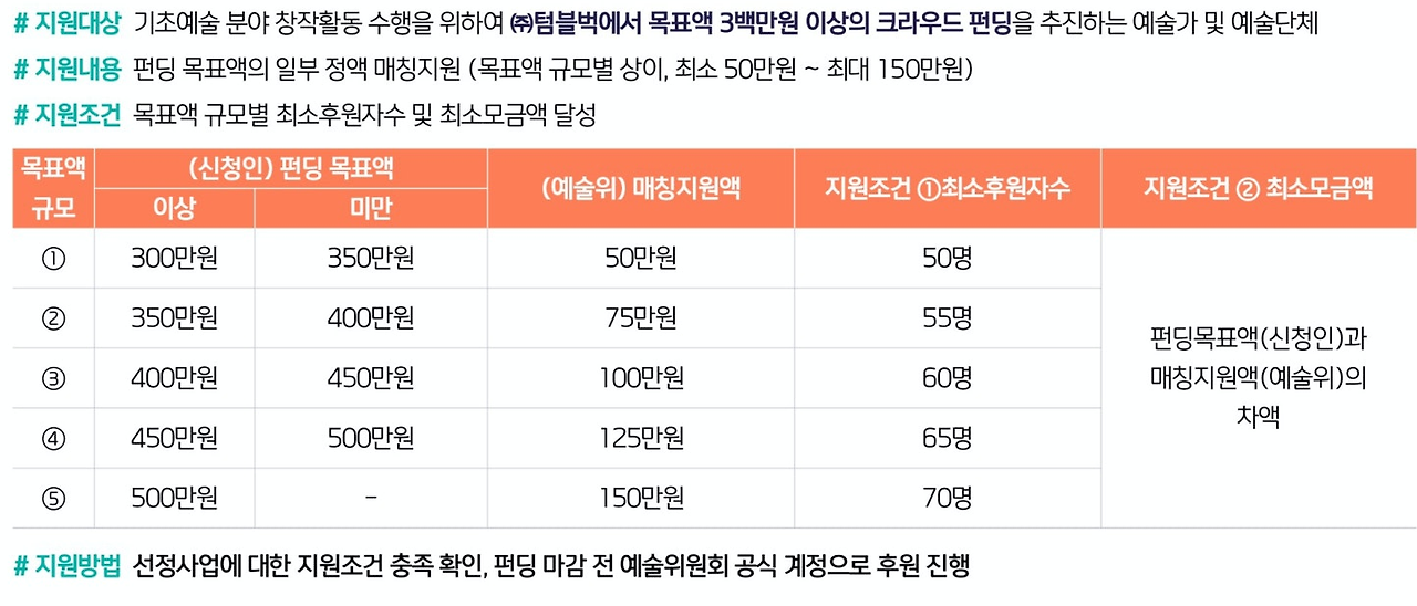 <한국문화예술위원회>에서 텀블벅에서 펀딩하는 창작자에게 지원금을 주고 있습니다.