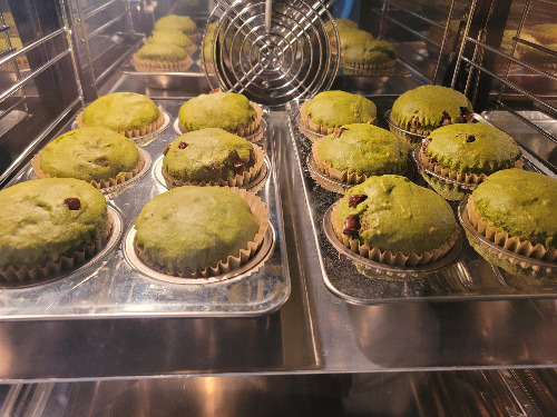 오븐에서 잘 부풀었는데, 꺼내니 쑥 꺼진다.
