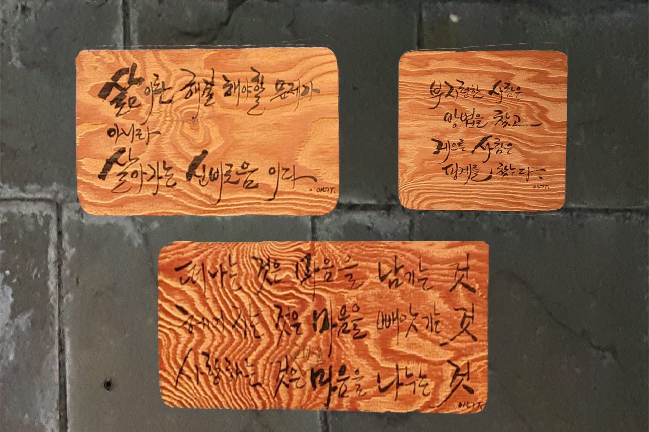항상 어정쩡한 거리를 유지하던 그녀와 한 뼘은 더 가까워진 것 같다. 그녀를 만나고 돌아오는 길에 예전에 동네 주점에서 보았던 캘리그래피가 생각나서 사진을 찾아보았다.