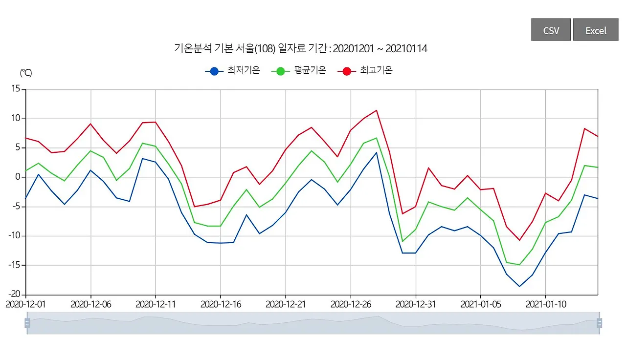 작년 겨울 기온 데이터(2020/12/01~2021/01/14) 올해 겨울 기온 데이터(2021/12/01 ~ 2022/01/14)