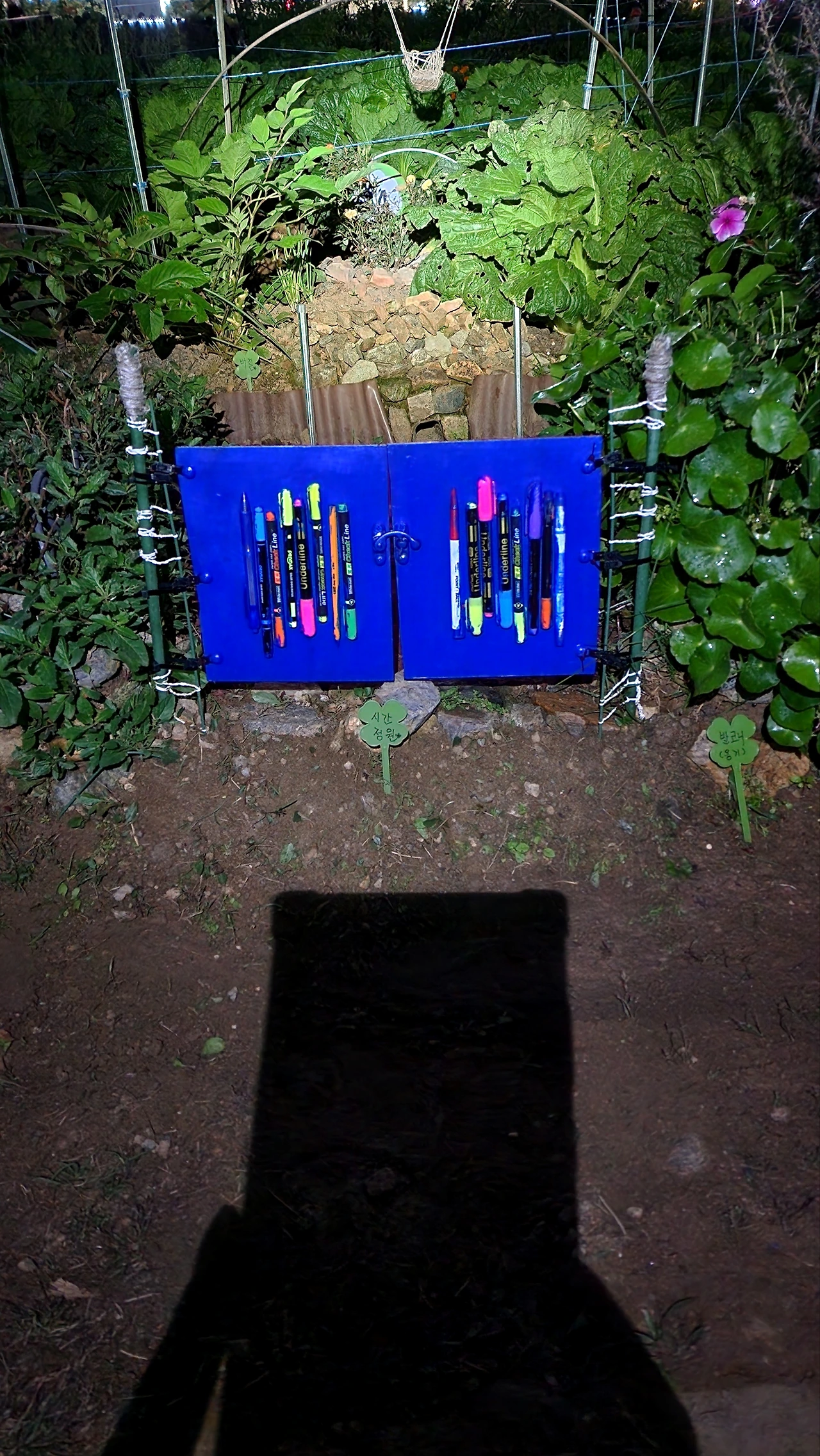 쭈그리고 앉으니 다리가 아파서 비닐 깔고 아예 털썩 앉아서 교체 작업을 시작했다. 머리에는 헤드렌턴 두르고서 어둑한 저녁 무렵에 작업을 하다 보니 모기가 몰려든다. 가을 모기는 입 돌아간다는데 아직 안 돌아갔나 보다. 몇몇 분은 지나가며 내 작업을 보고 가신다. 대문을 교체하면서 이런 생각이 들었다. 이러고 있으니 텃밭은 내 도화지로구나!
