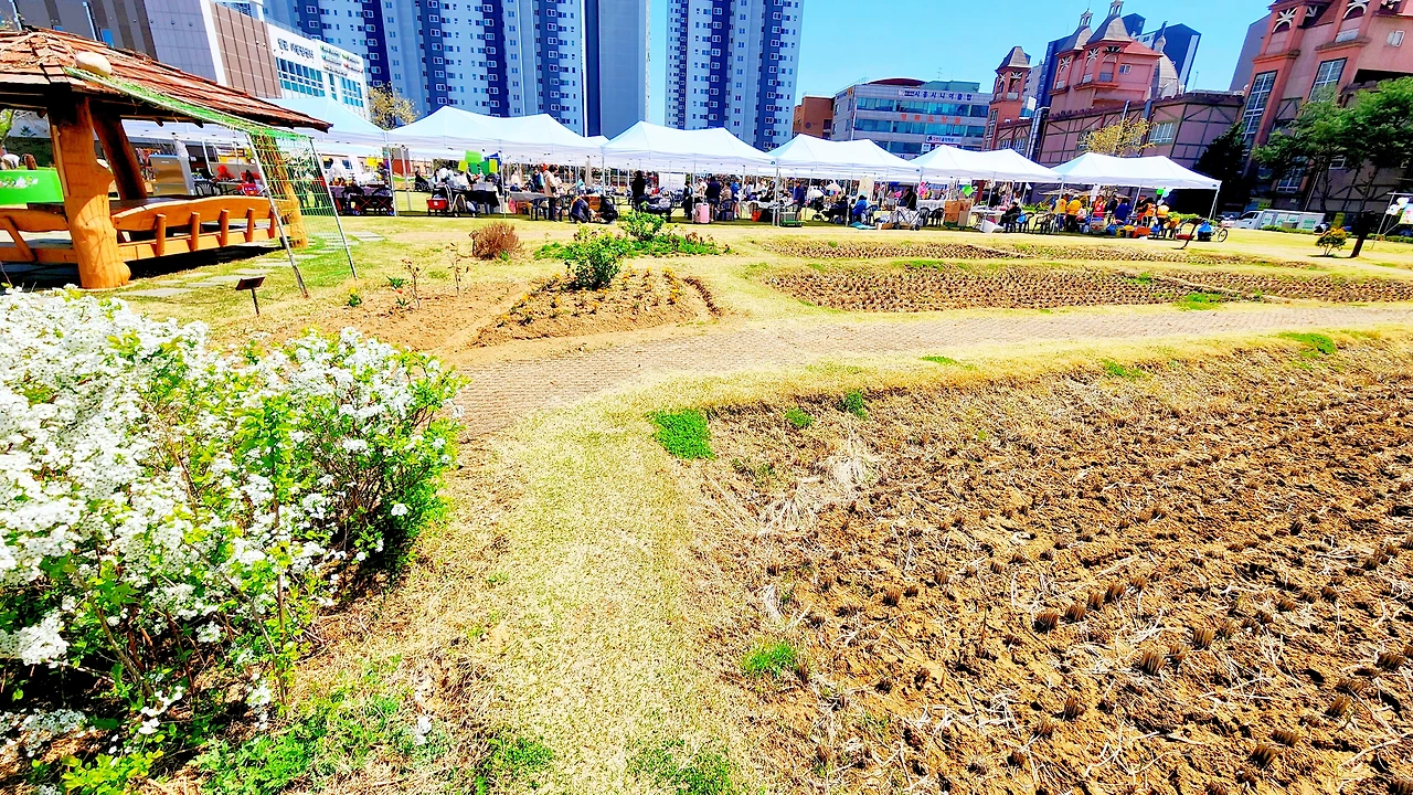 잔디밭 위에서는 마켓이 열렸다. 공예품들과 먹거리 장이 펼쳐졌다. 막걸리와 파전도 있었다. 박농민과 나는 상추를 심다 말고 막걸리와 파전을 오두막에 앉아서 먹었다. 그리고 한 곳에서 모자와 예쁜 반지를 샀다. 흡족했다.