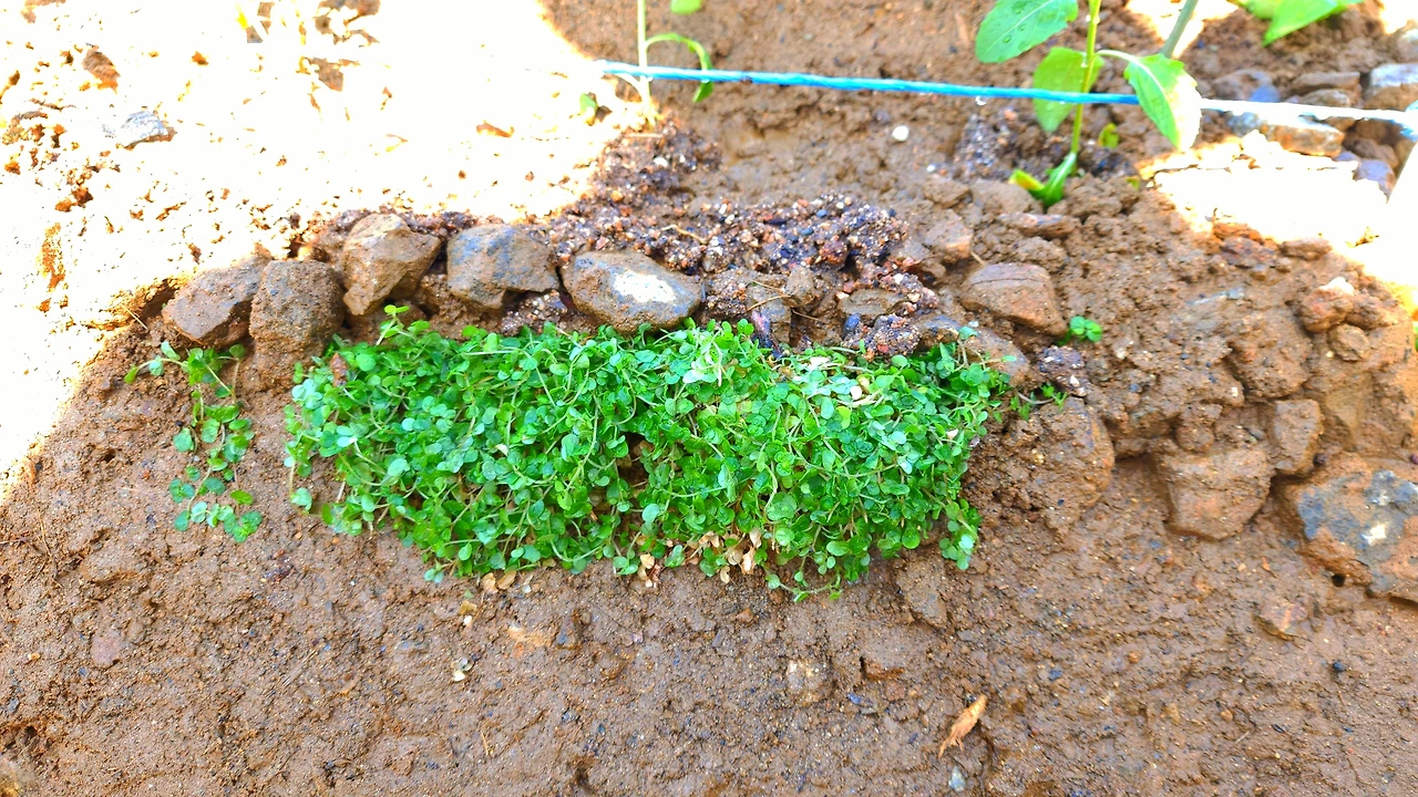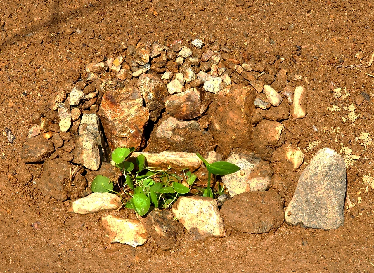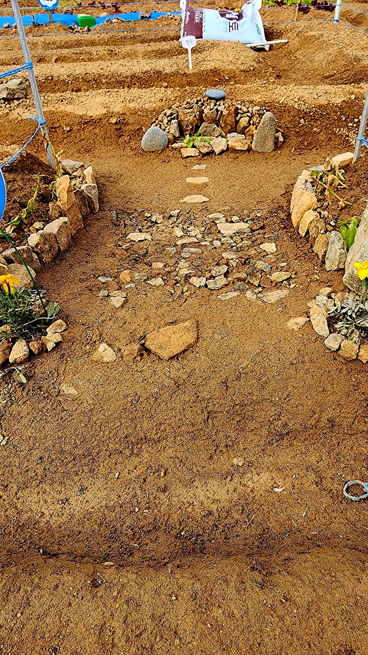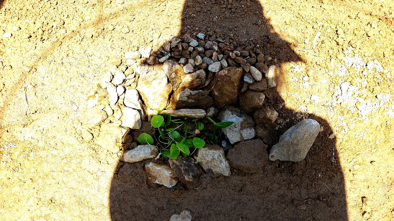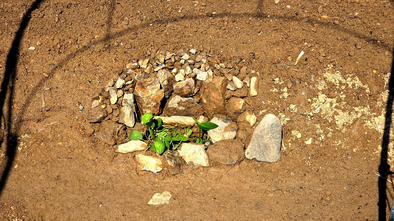 이웃 텃밭/ 가온데에 돌을 모아서 휴식터로 만들었다.