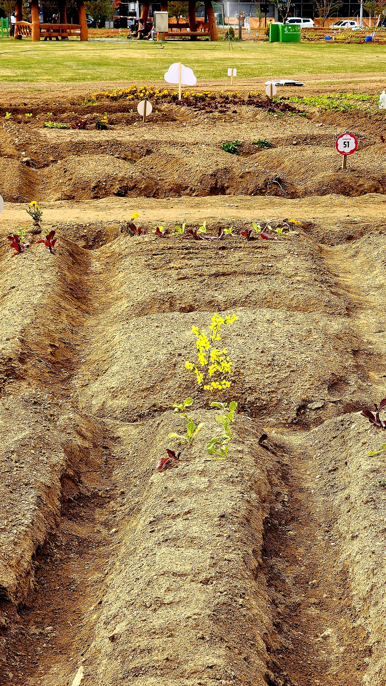 텃밭을 처음 하시는 분들은 어떻게 해야 할지 잘 모르겠다고 하신다. 작년에 나도 그랬다. 몇몇 사람들이 텃밭의 사각 아우트라인을 잡아 나가고 다른 텃밭과 구별되게 만들면 다른 사람들은 자기 텃밭을 가꾸는 것에 부담이 생기는 것도 같다.