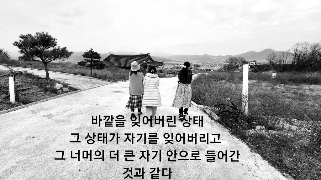 두 번째로는 ‘도취적 현실’이다. 이 현실은 도취적 현실이다. 그러므로 이 도취적 현실은 ‘비현실적인 세계’이다. 이 도취적 현실은 개인을 존중하지 않으며, 개인을 파괴하면서 신비주의적인 일체감을 통해 개인을 구제하려고 한다. 이 말은 무엇인가? 책 본문(p39)의 “자기 포기의 높이에 도달해 있어야 한다”와 맥락을 같이 하고 있다. 개인을 존중하지 않고 파괴한다는 의미는 “자기 포기”와 관계된다. 자기 포기는 곧 “자기를 잊어버리는” 상태를 의미한다. 인간이 자기를 잊어버릴 때는 어떤 때인가? 그것은 “몰입” 또는 무엇과 “합일”된 상태에서만 그렇다.