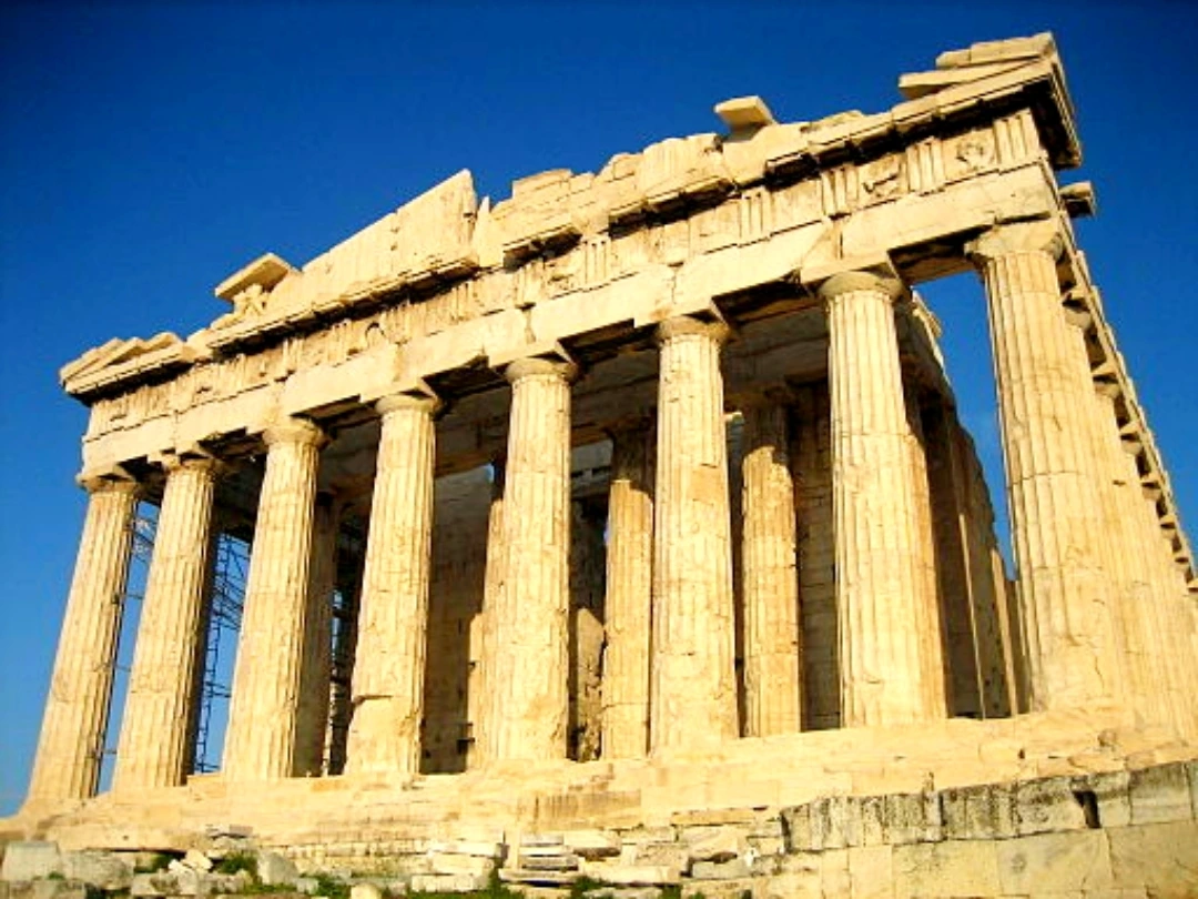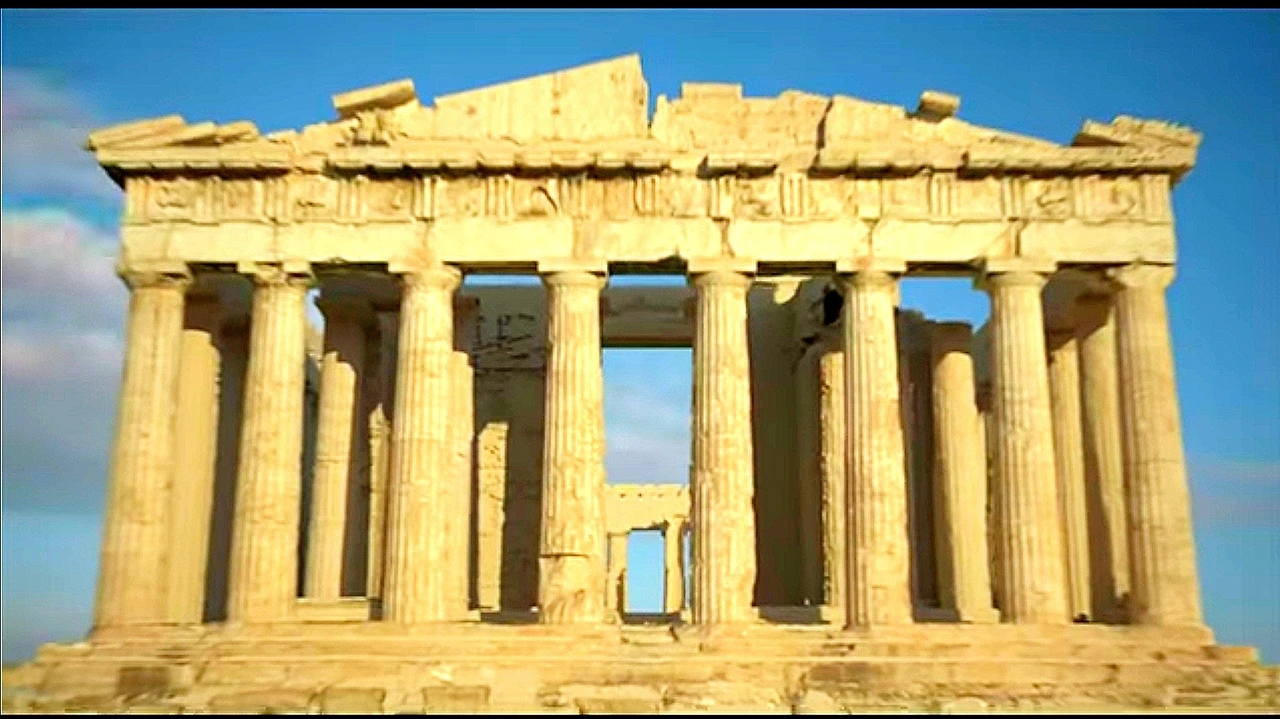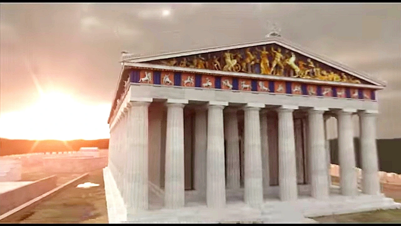 파르테논 신전/아테나 신전/3D 복원 영상화면/ 다음백과, 나무위키 *** 다시 살펴보니, 니체가 3장에서 묘사하고 있는 신전은 아폴론 신전이 아니라 '파르테논 신전'과 더 적합하여, 이 부분을 '사진 교체'하여 정정합니다.