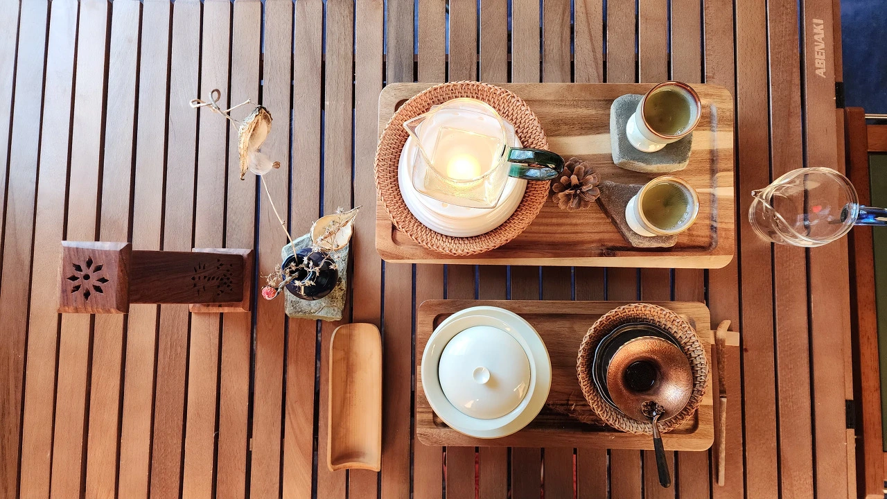 나는 삼각대를 세우고 차놀이 영상을 촬영하였다. 무슨 차를 우릴까? 첫 차는 녹차였다. 소포장된 녹차이다. 작년 차맛어때 제다 장소인 한밭제다 세작녹차이다. 소포장된 차는 가지고 다니기 좋다.