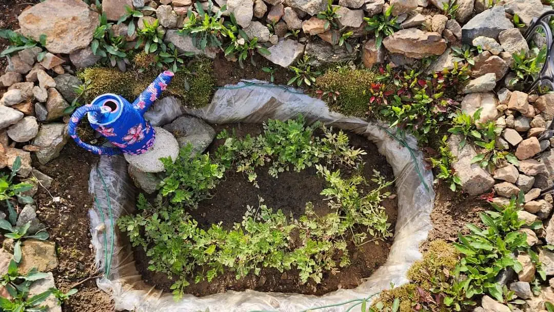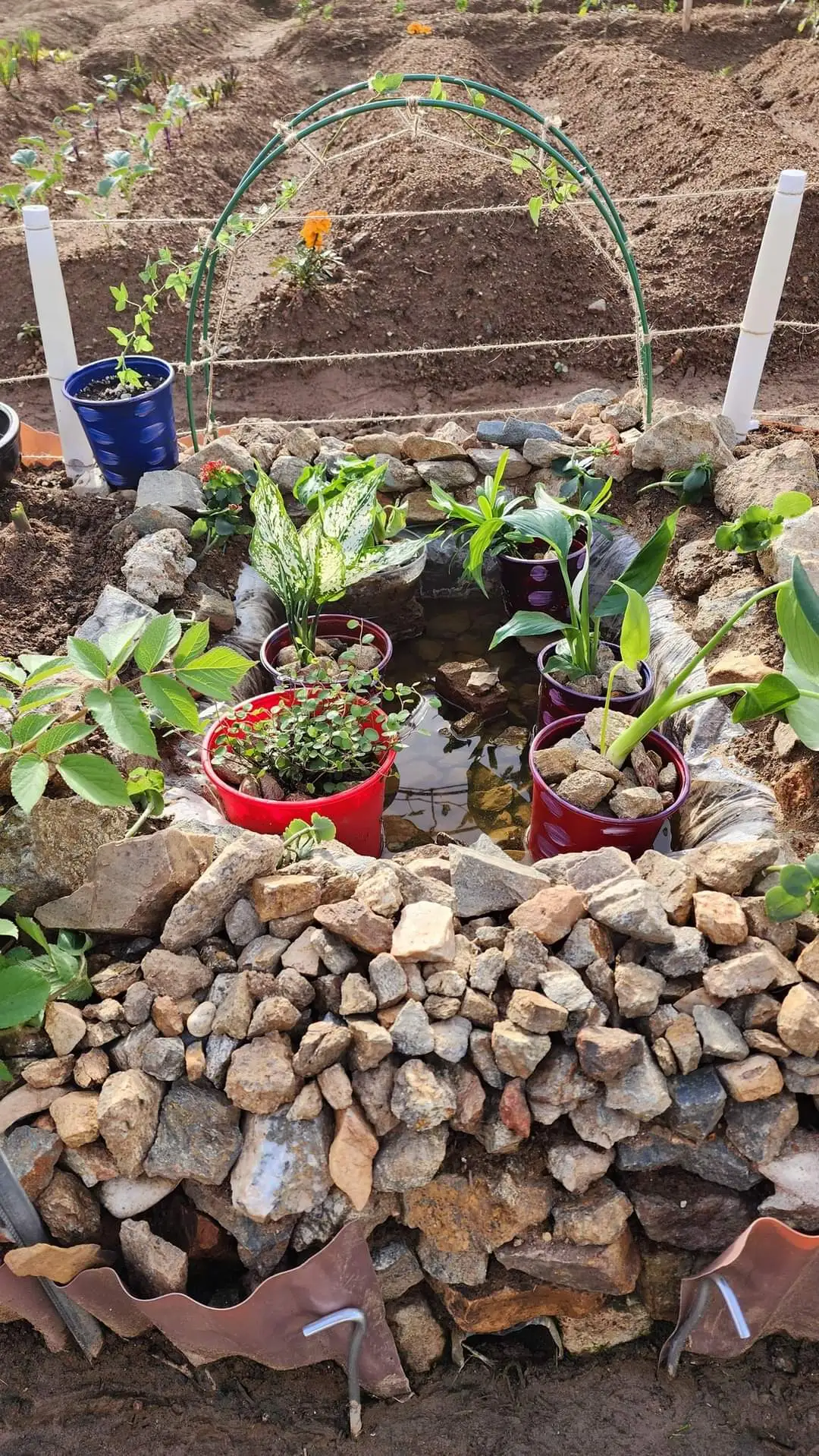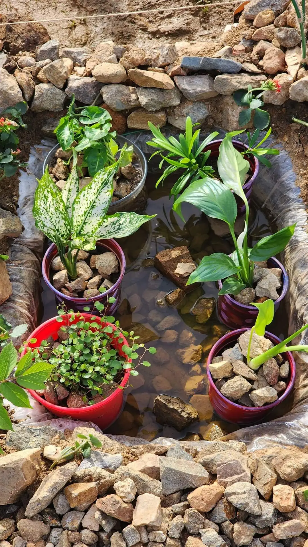며칠에 걸쳐 봄날 텃밭 정비를 마쳤다. 새로 만든 연못에 수생 식물을 들였다. 나한송, 몬스테라, 노랑 어리연, 스노우 사파이어, 트리안, 싱고니움, 스파티 필럼, 아이비, 카랑코에 그리고 이끼다.