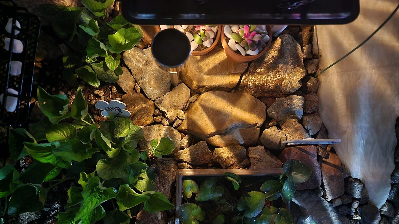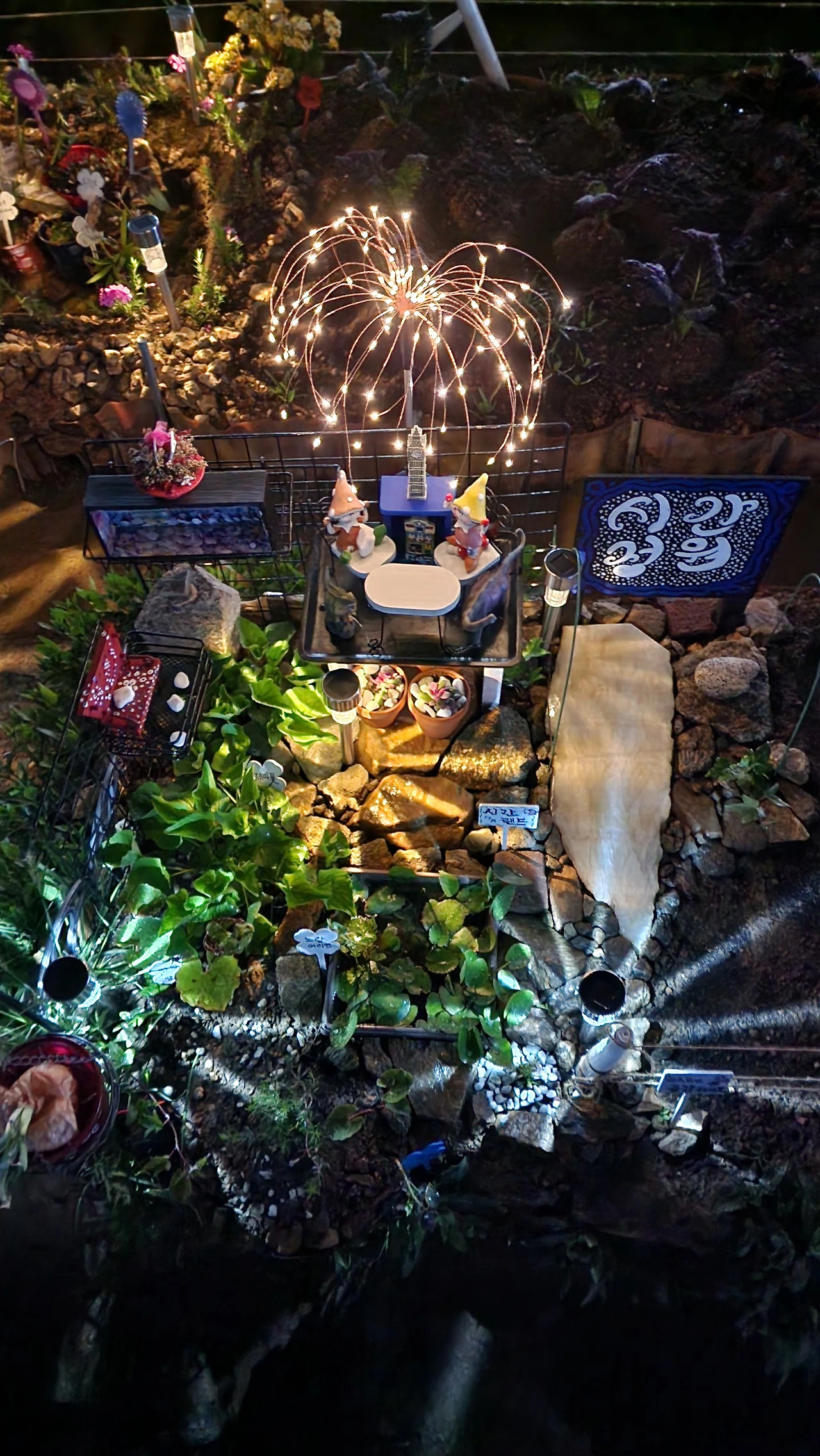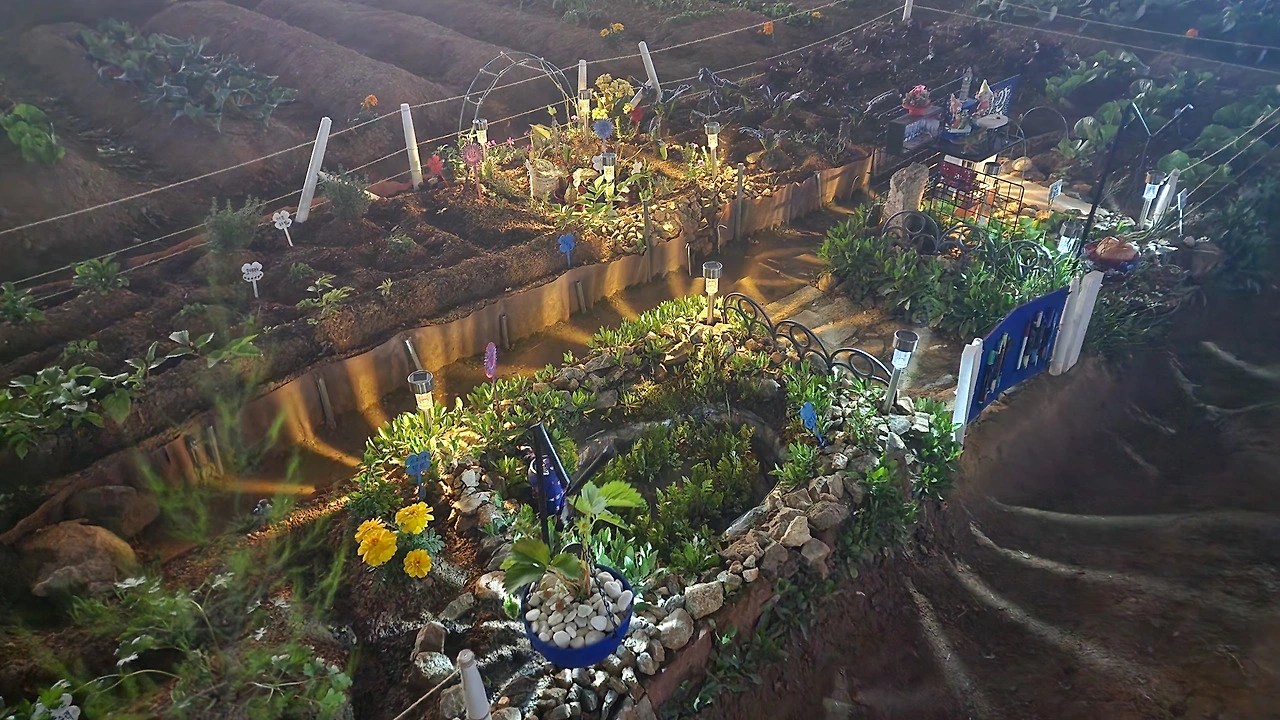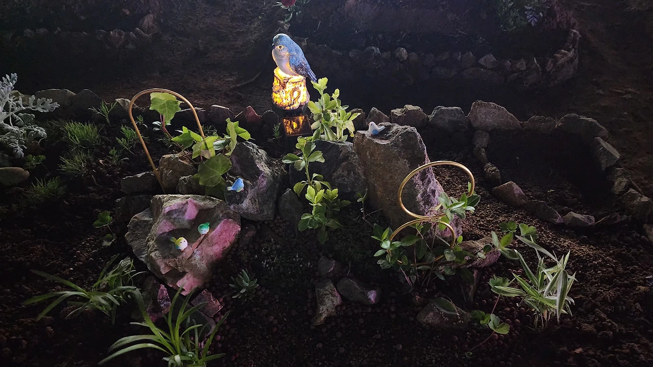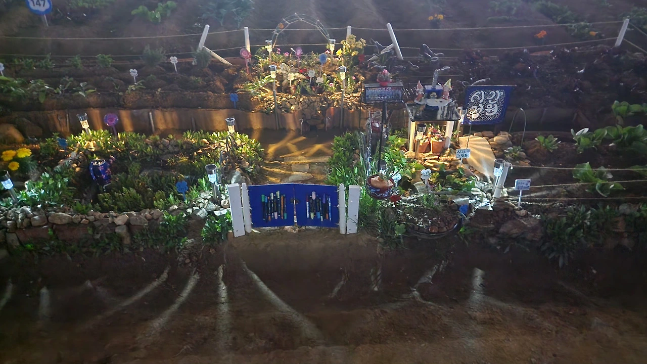 밤 산책을 하자. 비가 온 저녁에도 조명에 불이 들어왔다. 태양열 조명기구 성능이 좋았다. 아주 은은한 불빛이 텃밭 안에 퍼진다. 텃밭에 문명이 발을 들인 순간이다. 자연스러운 그대로의 상태에 대한 짧은 망설임은 있었으나 이웃텃밭들의 은은한 조명이 앙증맞게 귀여웠다. 그렇게 조명기구를 시간정원에 들였다.