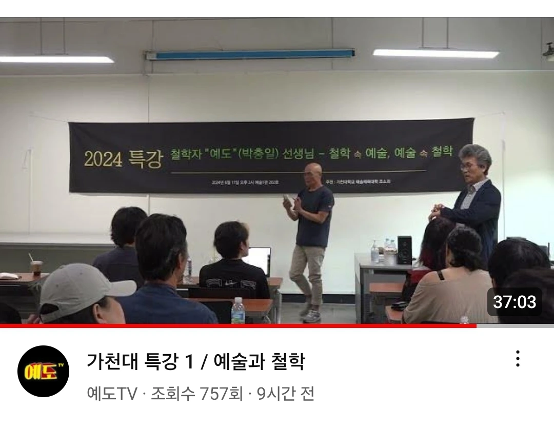 이상은 예도 샘의 가천대 조소과 특강이다. 다소, 소리가 안 들리는 부분도 있다. 특강을 그대로 녹ㅇ화촬영한 것이므로 감안해야 한다. 해서 예도 샘 강의 내용을 참조하여 일어나는 내 생각을 통하여 나름대로 정리해 보았다. 이렇게 강의로 보고 들을 수 있어서 좋았다. 요즘 니체 낭독과도 잘 맞아떨어지고 있기 때문이다. 선악의 경계가 모호해지는 시대다. 우리는 이런 사회 현상에서 그러한 부분을 수용하고 살아야 한다. 누군가 그 무엇을 규정해 주는 사회가 아니다. 그러므로 더더욱 그 자신의 세계가 중요해졌다. 혹자는 남 눈치 보지 말고 자기 하고 싶은 대로 해야 한다고 말한다. 그런데 우리의 삶을 보면 언제나 타인과 그 자신은 관계 맺어져 있다. 그 어느 시대보다 더 에티켓이 발달할 수밖에 없는 사회에서 살고 있는 것이 우리의 실재의 모습이다. 타인을 의식하지 않고 자기 하고 싶은 대로, 자기만 보고 살 수 없는 상황인 것이다. 그렇기에 오히려 더 그 자신 안으로 파고드는 시대가 된 것일 것이다.