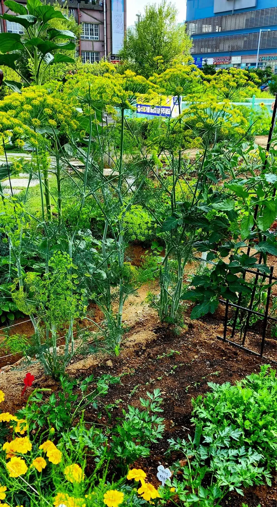 * 아침놀의 이 부분을 옮겨 쓰기 한 이유는 순전히 '딜꽃' 때문이다. 딜꽃을 보고 있으면 그냥 저절로 이런 생각이 든다. 딜과 딜꽃은 기품 있고 고결한 느낌을 준다. 우아하고 관조적이다, 바람이 살랑 불어 흔들리면 여백이 있는 꽃모양은 어떤 먼먼 기억을 상기시키는 듯하다. 그래서 나는 딜꽃이 귀족적이라고 생각하게 되었다. 이웃 텃밭 분들도, 오며 가며 보는 사람들도 모두 이 꽃 이름이 뭐냐고 물어본다. 아마도 이구동성으로 같은 느낌을 받는가 보다. 사진으로 찍어도 그 느낌은 쉽사리 잡히지 않는다. 햇살 좋은 한낮에 사진을 찍어야 하는가. 날이 더워 빛 좋은 시간대는 피하게 된다. 해가 길어 저녁 7시가 되어도 아직 훤하다. 괜히 저녁 무렵이 길어지고 그러다 금세 저녁 시간이 지나간다.
