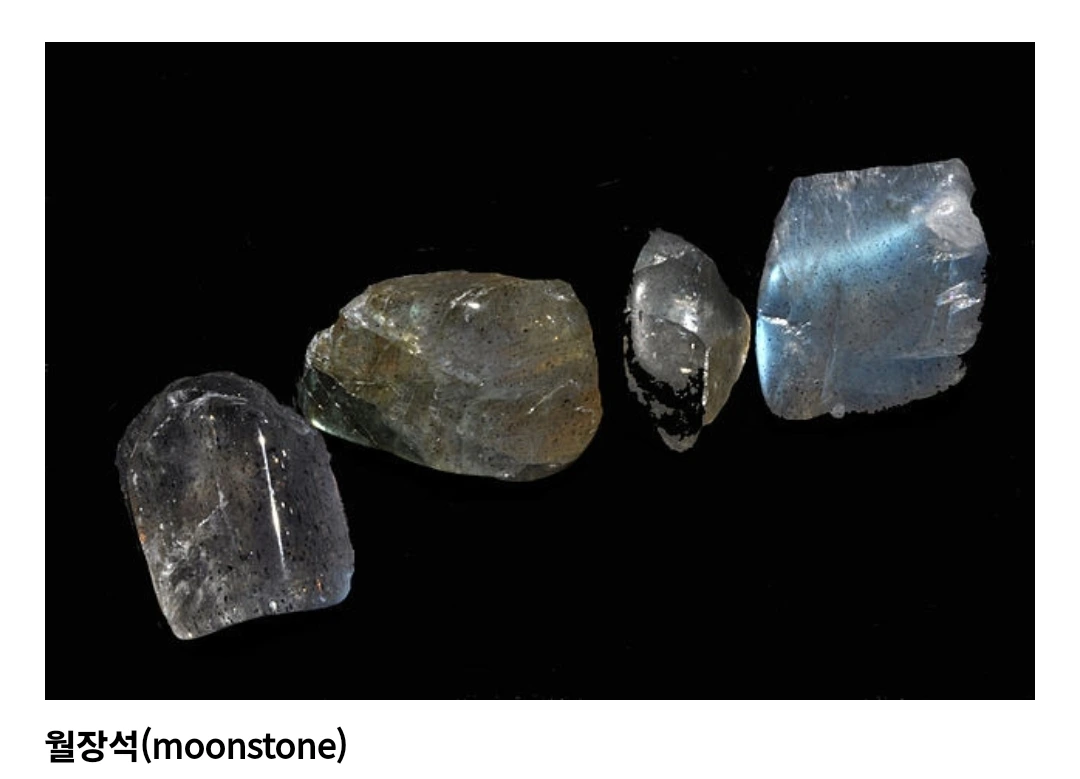 지구에도 이 칼슘장석(월장석)이 굉장히 많다. 지구상에 발에 차이는 돌의 거의 반은 '장석'이라고 불러도 된다.