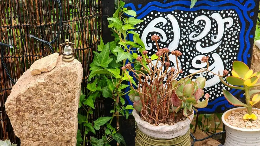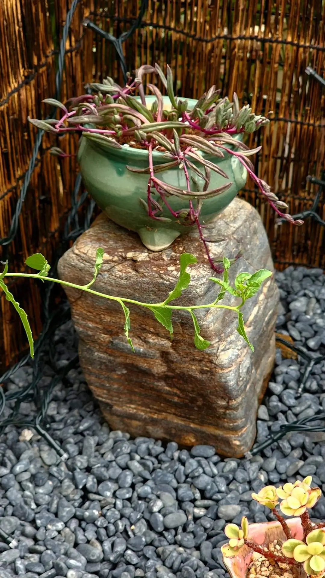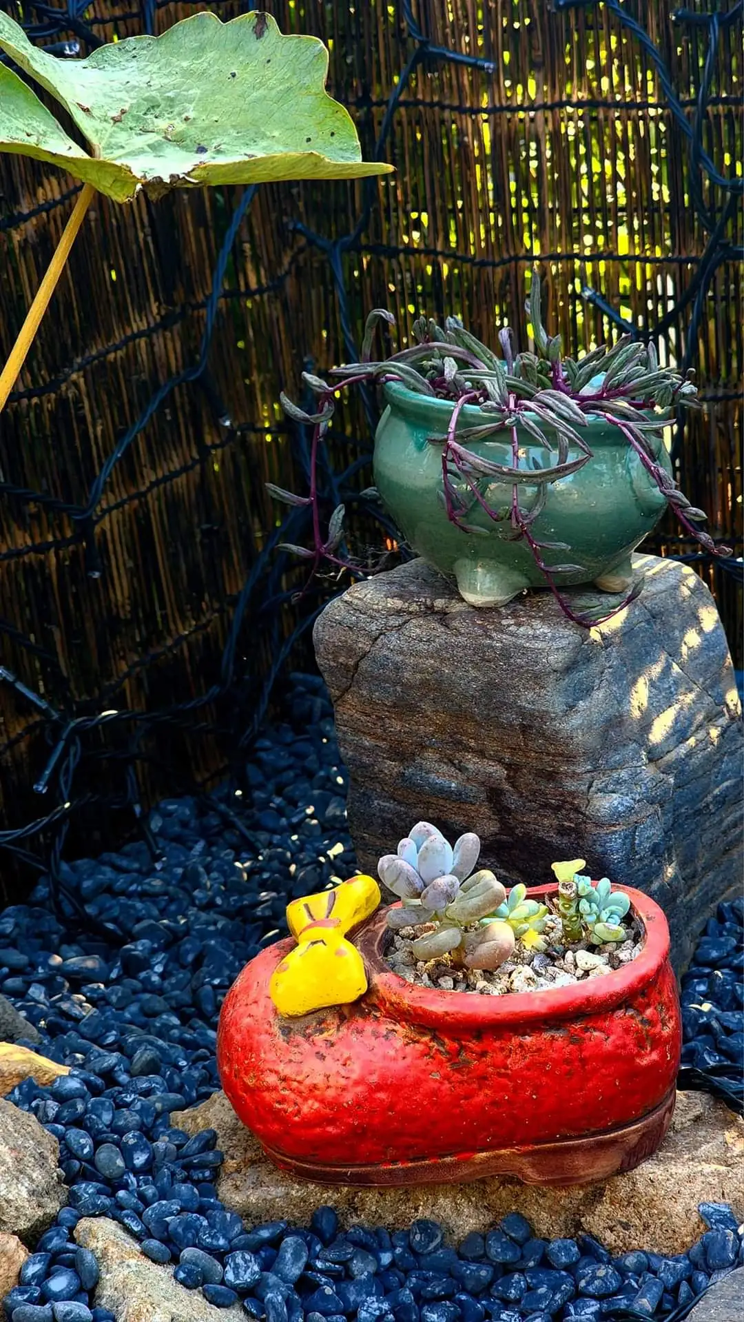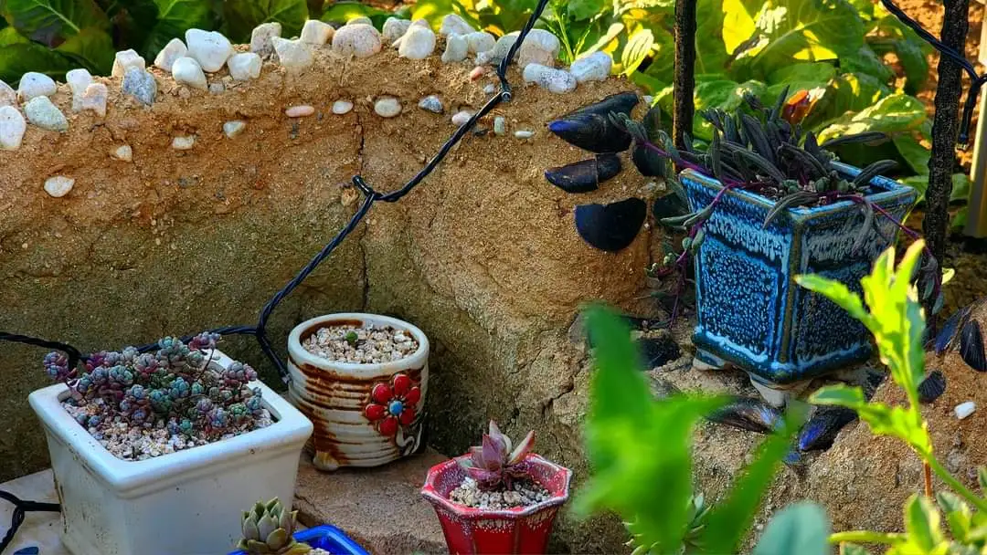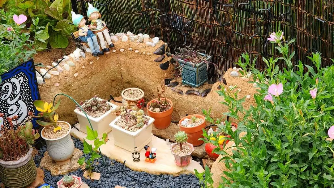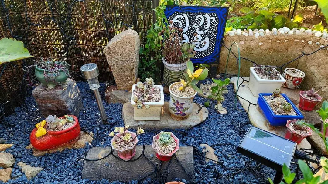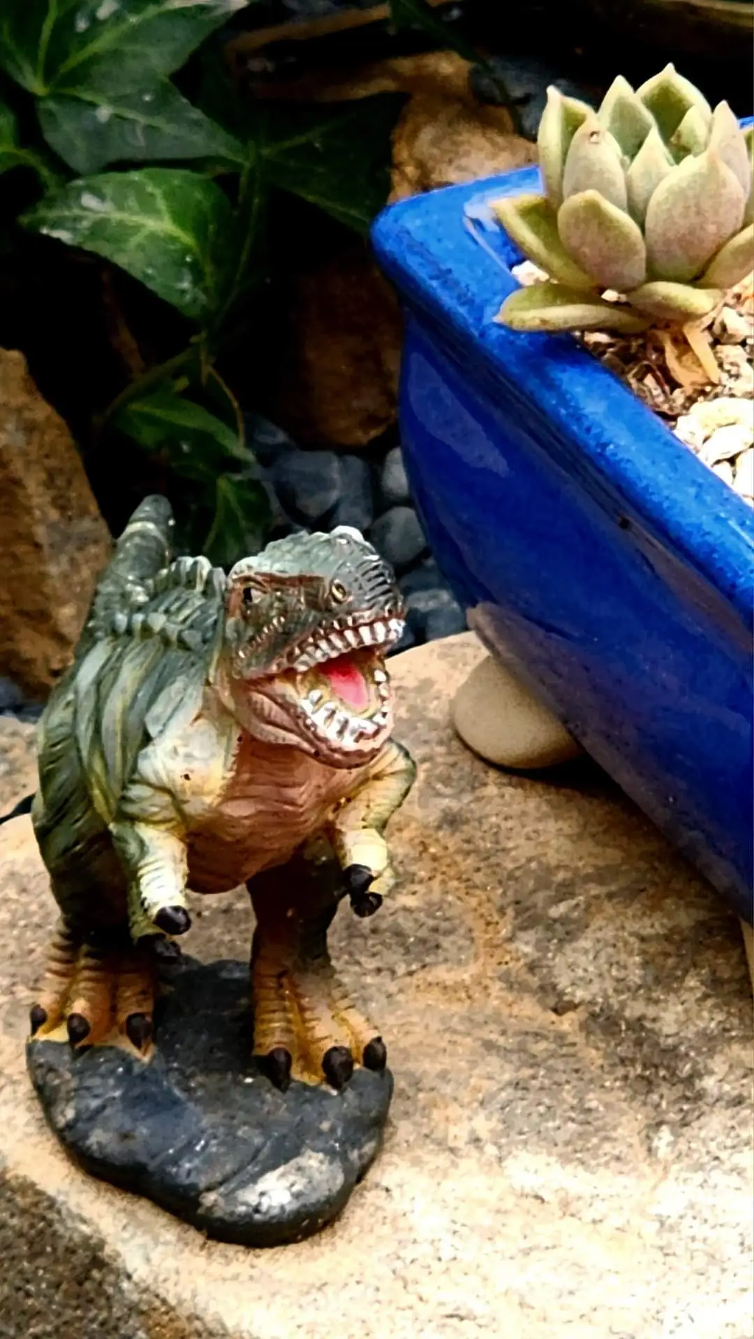 다육들을 돌 받침 위에 배열하였다. 미니어처들을 하나씩 자리를 잡아 주었다. 아이들이 가져다 놓은 미니어처 몇 개도 설치했다. 박농민은 별빛 조명을 설치했다.