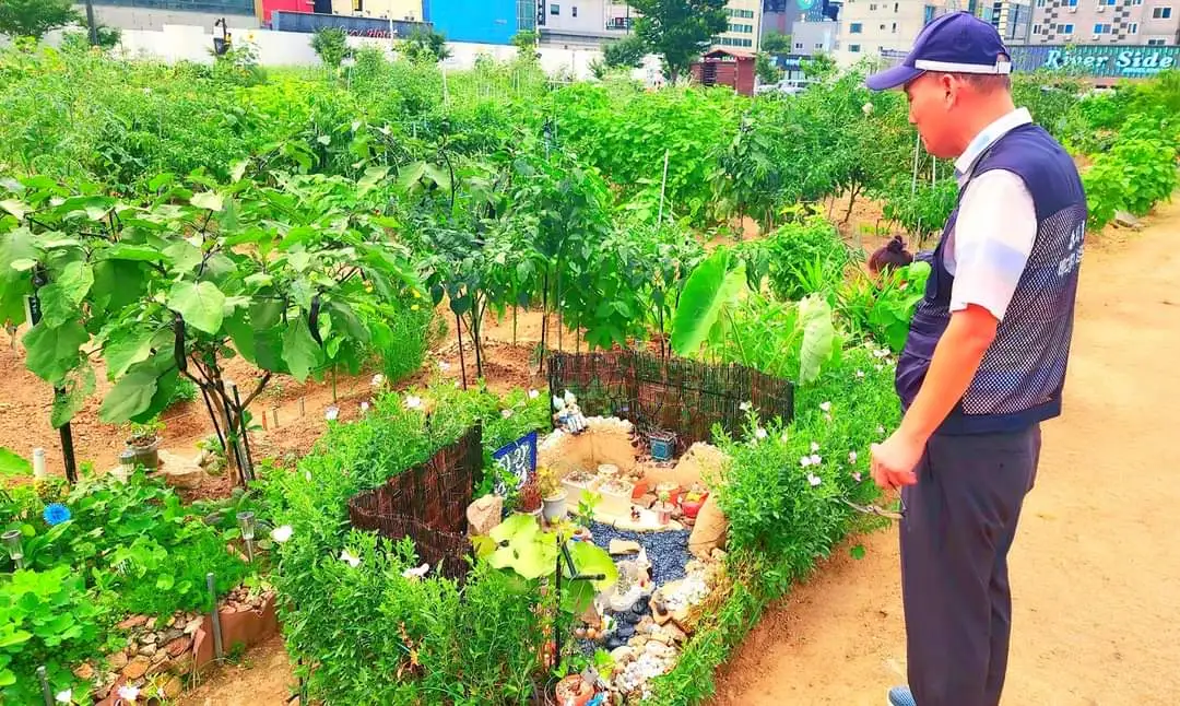 시간랜드 변신 작업을 마치고 요즘은 감상모드로 돌입하였다. 그제는 텃밭대장님께서 "이 뜨거운 여름 날에!" 라고 하시기에, 시간랜드 앞에 서 계시는 모습을 한 장 찍었다. 이야깃거리가 있는 텃밭정원은 사람과 사람의 거리를 풍성하게 한다. 이웃들과 감상하기도 하고 혼자 감상하기도 한다. 이렇게 변신한 시간랜드는 이제 별빛랜드이면서 우주이기도 하다. 그 안으로 빨려 들어갈 듯이, 이내 정신 안의 넓은 공간으로 우주는 연결된다. 그렇게 사람은 풍부해진다.