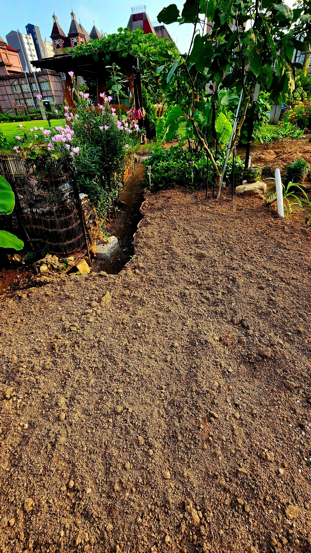 땅을 뒤집기 전, 이 위에 거름과 땅 해중제와 석회를 뿌리고 뒤집었다. 사진을 찍어 놓은 줄 알았는데... 없다!