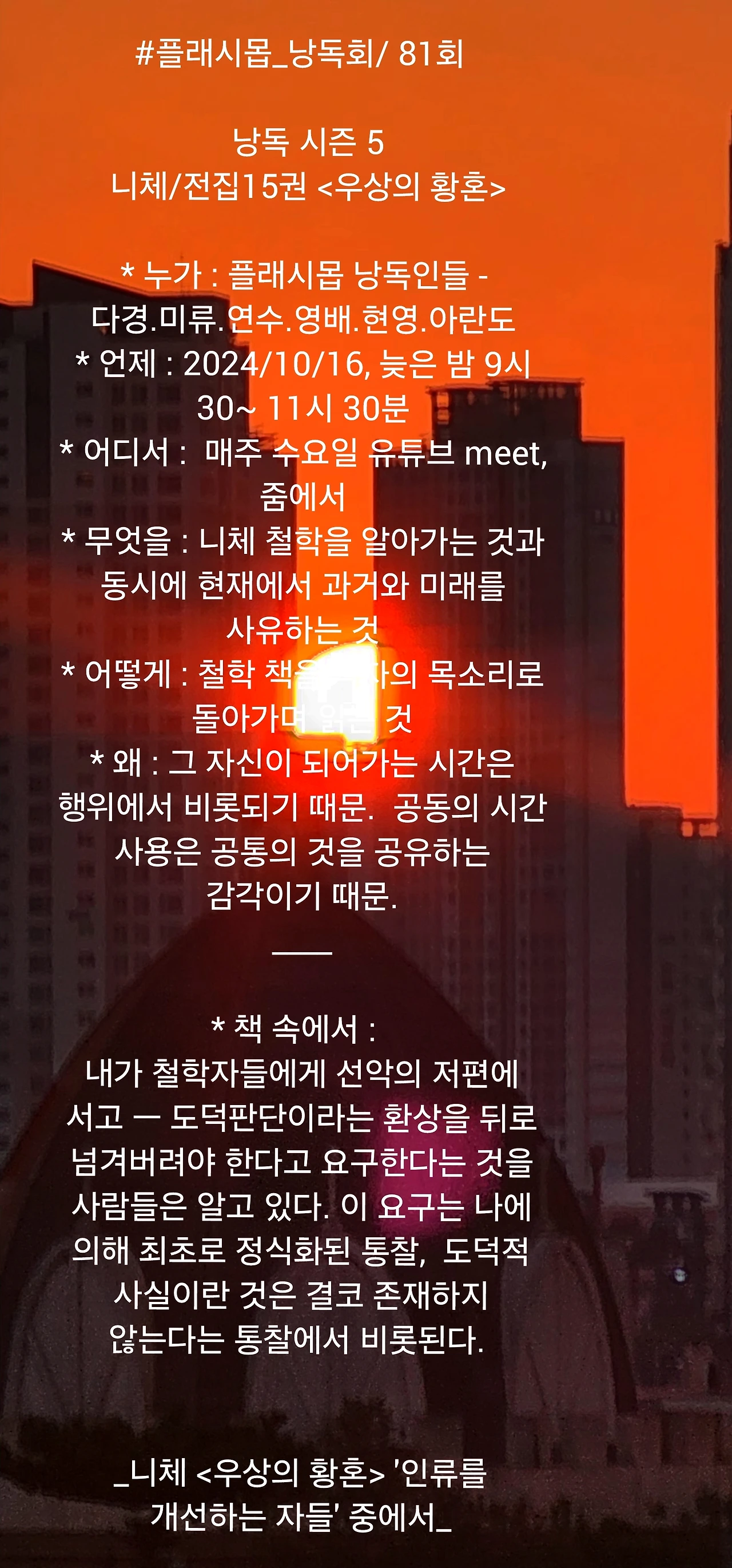 내가 철학자들에게 선악의 저편에 서고 ㅡ 도덕판단이라는 환상을 뒤로 넘겨버려야 한다고 요구한다는 것을 사람들은 알고 있다. 이 요구는 나에 의해 최초로 정식화된 통찰 : 도덕적 사실이란 것은 결코 존재하지 않는다는 통찰에서 비롯된다. 도덕판단은 존재하지도 않는 실재성을 믿는다는 점에서 종교적 판단과 공통된다. 도덕은 단지 특정 현상들에 대한 해석이고, 좀 더 정확하게 말하자면 그릇된 해석에 불과하다. 도덕판단은 종교적 판단처럼 실재라는 개념도 갖고 있지 않고, 실재와 가상을 구별조차 하지 않는 무지의 단계에 속한다. 그래서 이 단계에서의 '진리'란 것은 순전히 오늘날 '공상들'이라 불리는 것을 나타낼 뿐이다. 이런 한에서 도덕판단을 결코 말 그대로 받아들일 수 없다 :