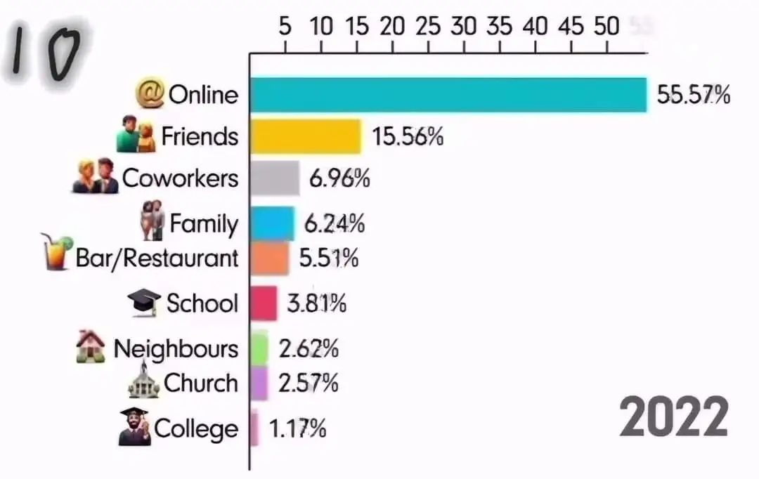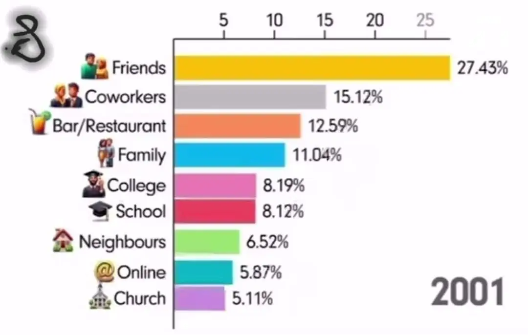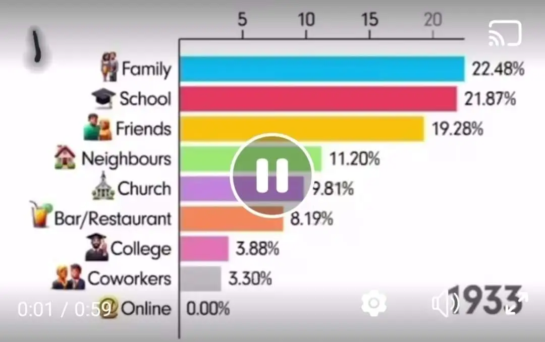 친구 <- 가족 <- 학교 <- 외식과 여가 <- 동료들 <- 이웃들 <- 대학 <- 교회 <- 온라인