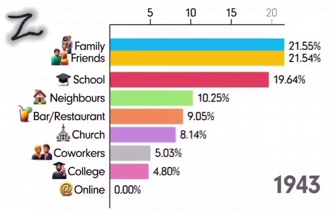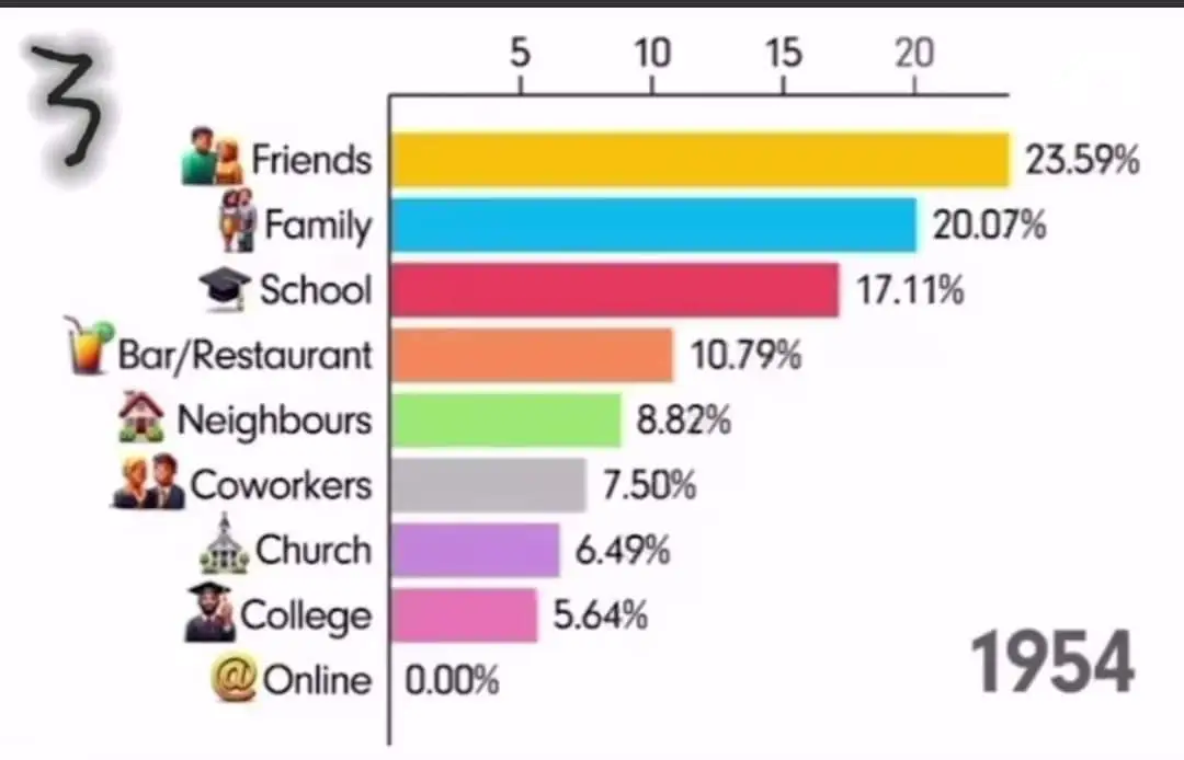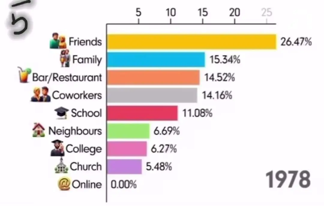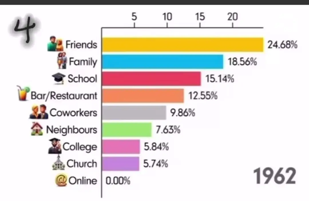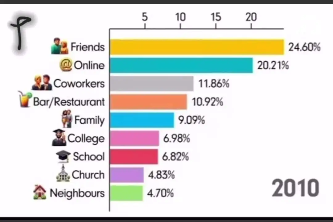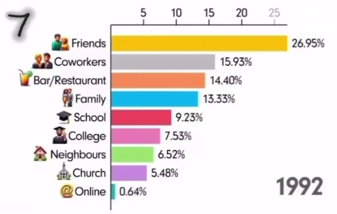 친구 <- 가족 <- 학교 <- 외식과 여가 <- 이웃들 <- 동료들 <- 교회 <- 대학 <- 온라인