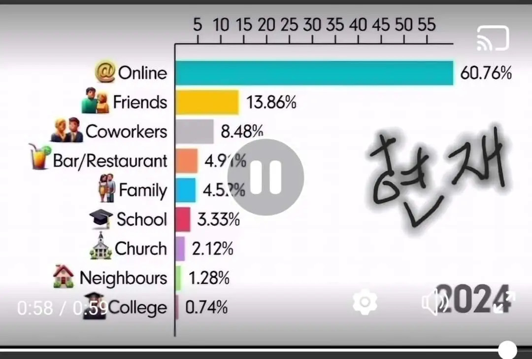 온라인 <- 친구 <- 동료들 <- 외식과 여가 <- 가족 <- 학교 <- 교회 <- 이웃들 <- 대학
