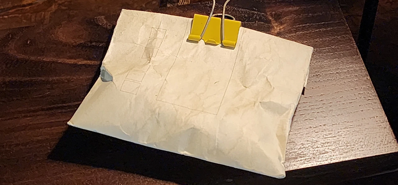 편지 봉투 절반 잘라서 담아 놓은 보이차(산차 형태)를 꺼내 보았다. 원차에서 해괴해 놓은 차일 것이다. 아니면 소분하여 나눈 차일 수도 있다.