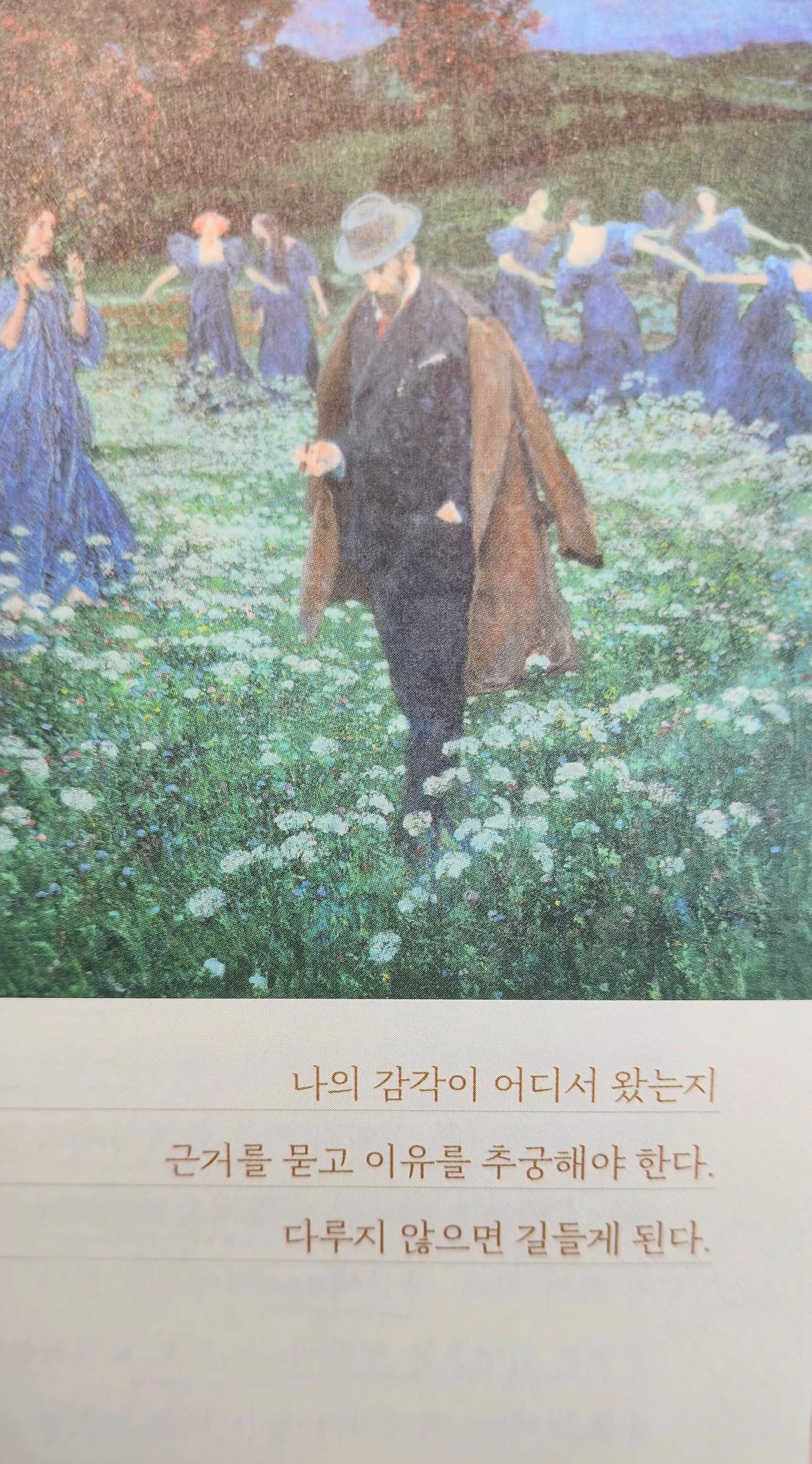 여기에 어떤 한 대목의 의문을 파고 들어가 확대하면 시가 되고, 더 깊이 파고들어 논증하면 철학이 되고 증명하면 학문이 되는 것이지 않을까.