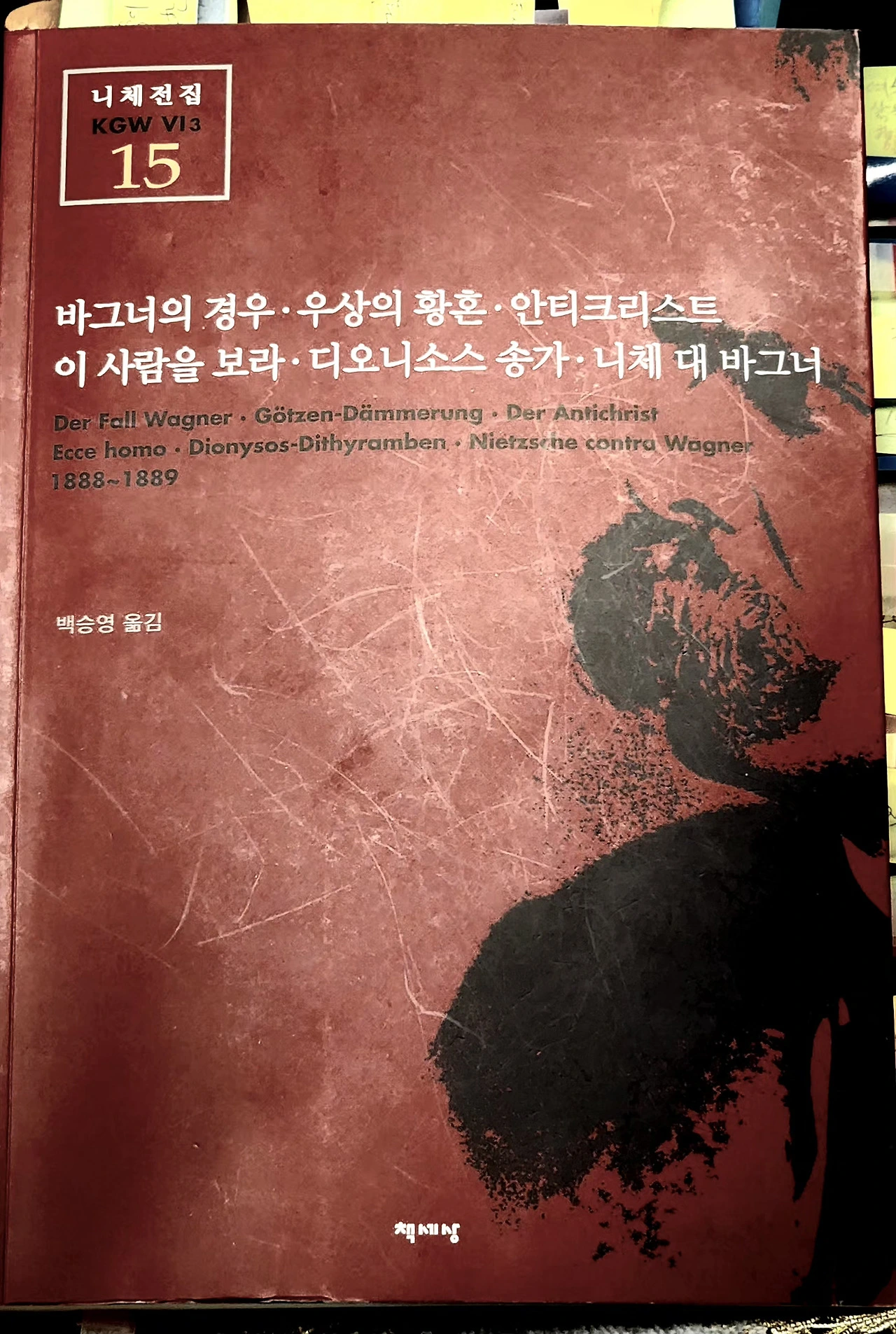 다 읽고 난 지금 심정은 15권을 마지막에 읽은 것은 잘한 일이라고 생각된다. 15권은 니체가 1888년에 그 자신의 삶과 저작을 총정리한 입장에서 쓴 단행본들을 모아 놓은 책이기 때문이다.