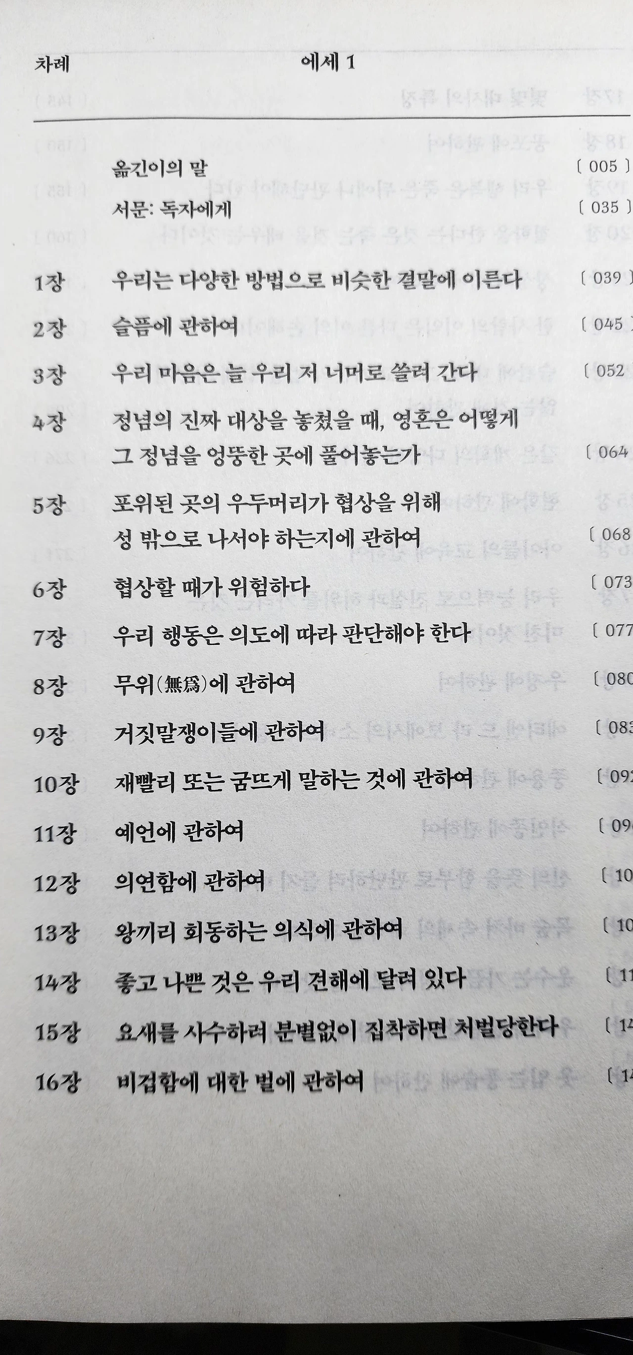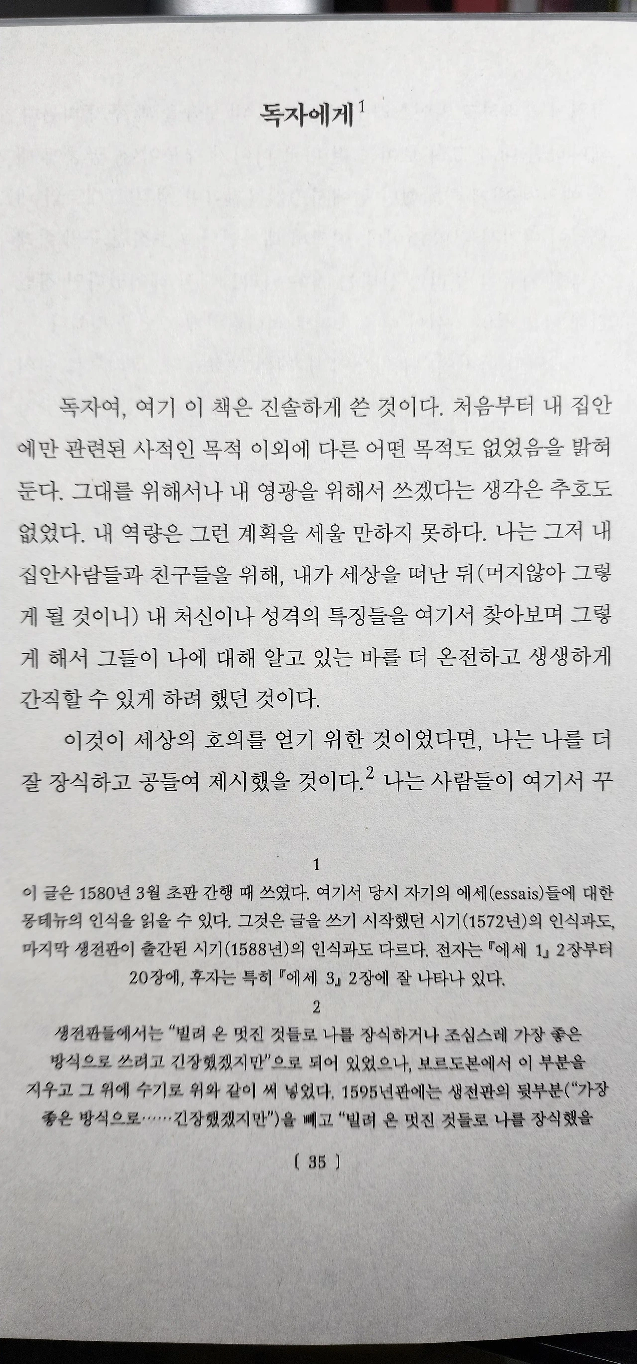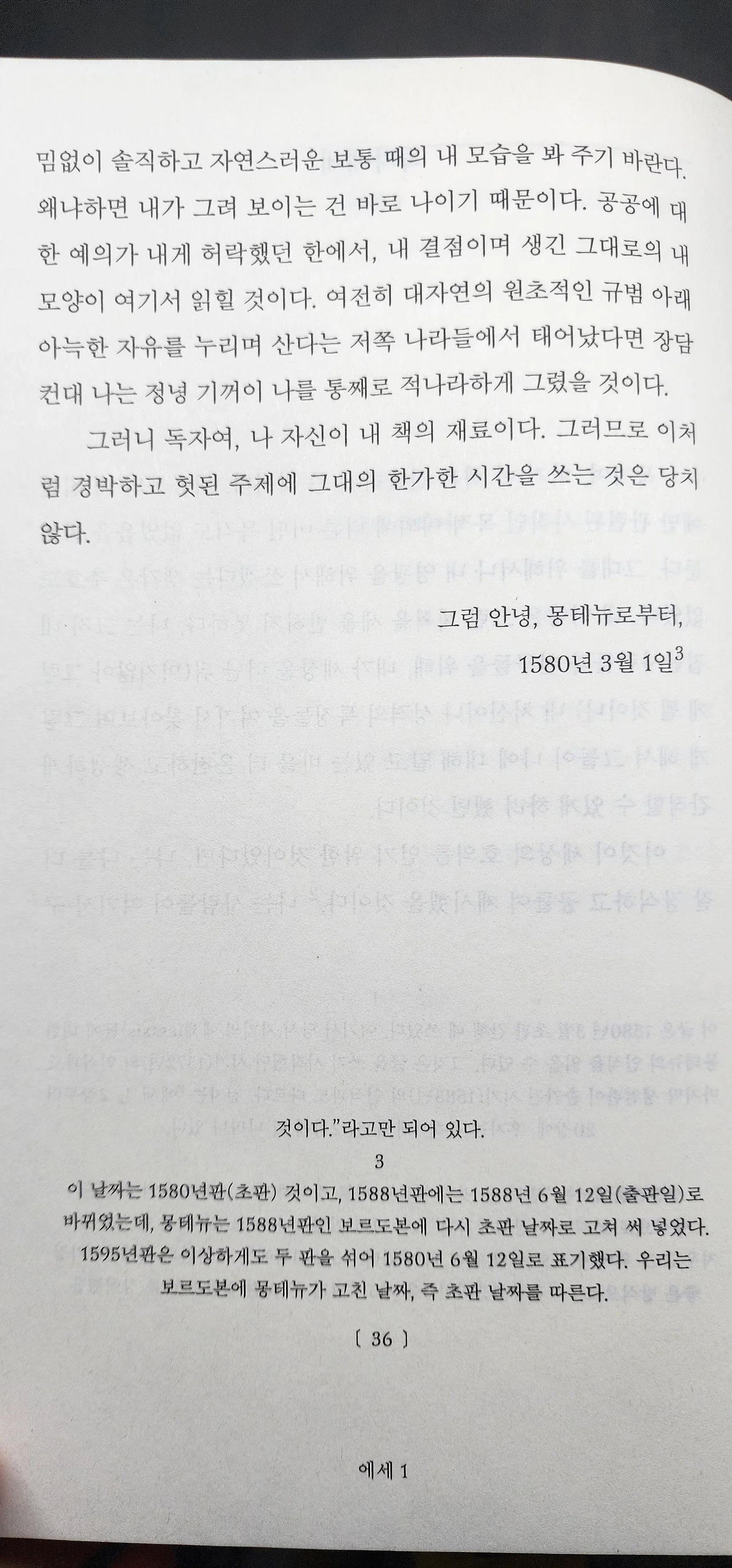 <에세 1>을 낭독으로 읽기 시작했다. 옮긴이의 글이 의미심장한 부분이 많아서 내 나름대로 재구성해서 옮겨쓰기 해보는 중이다.