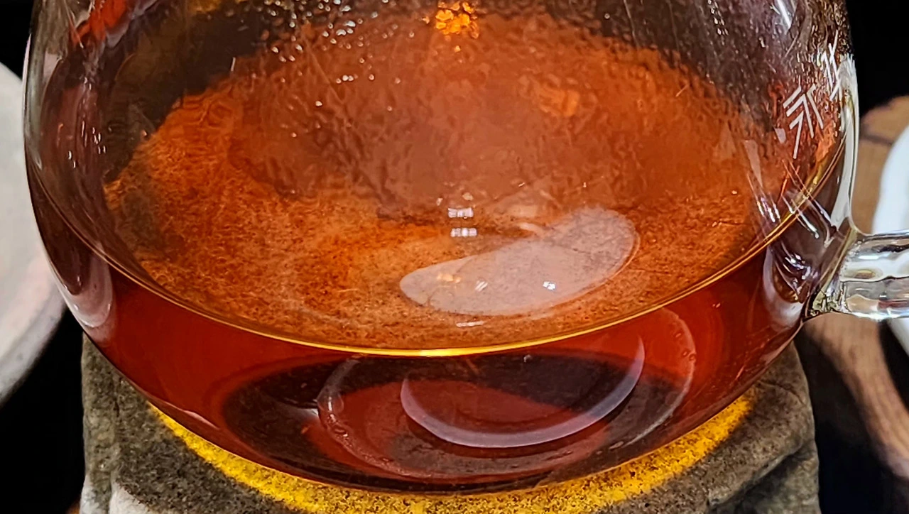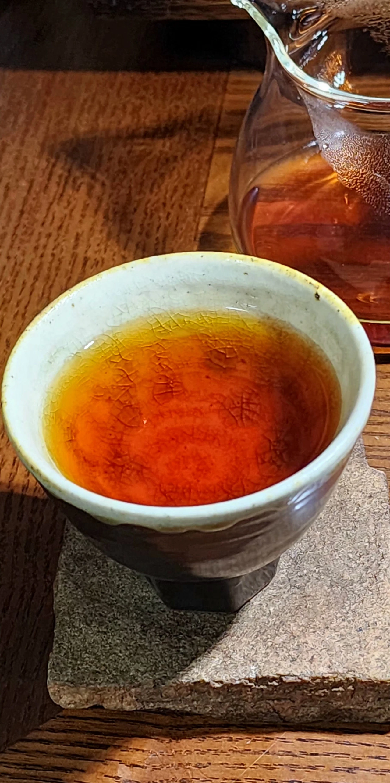두 번째 시음에서는 "흠, 이 차는 정산소종 맛과 향이네"했다. 두 번 시음 후에야 이 차에 대해서 리뷰를 써야지 했다. 가장 근접한 맛과 향을 찾자면 그러했다. 탕색은 본래부터 그런 것인지 아니면 시간이 지나다 보니 숙성되어 그런 것인지는 알 수 없지만, 짙은 홍빛은 맑고 깊어 보인다.