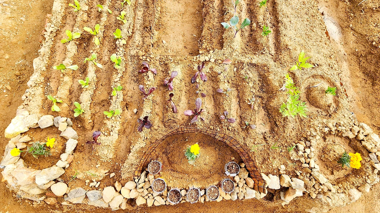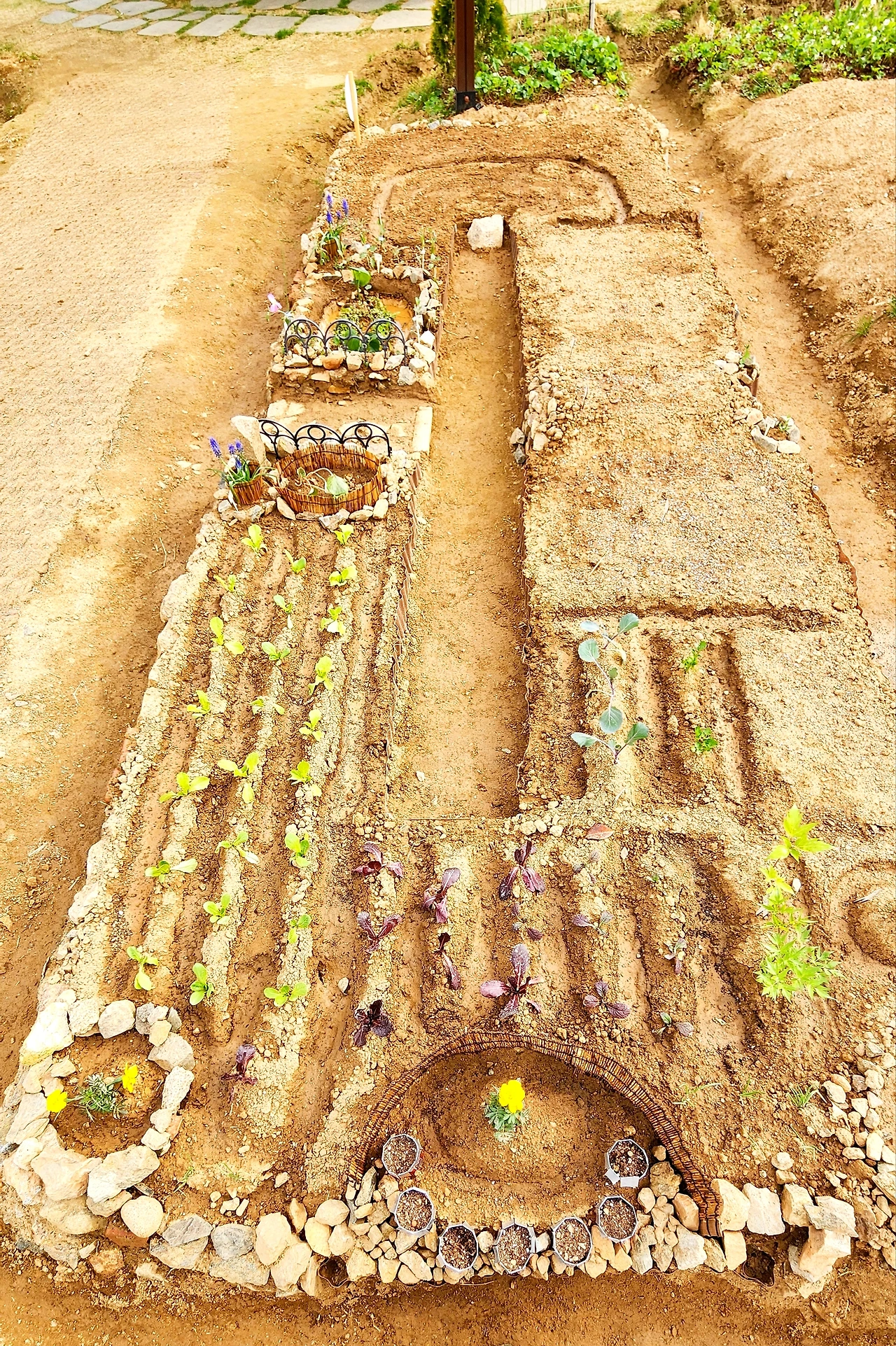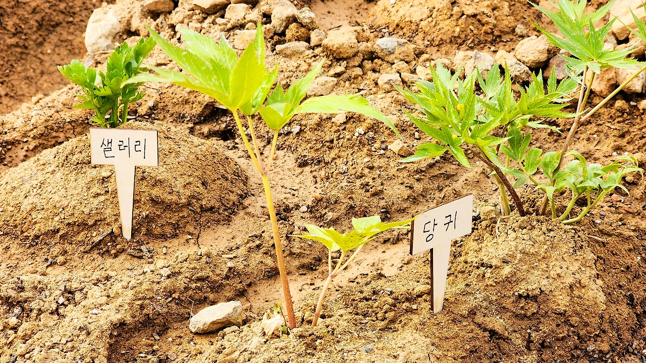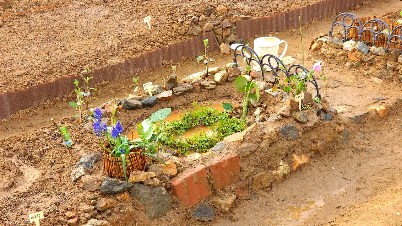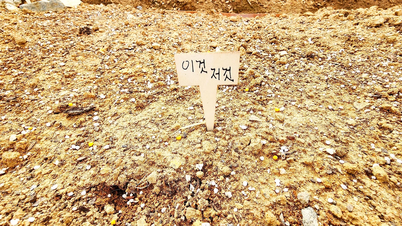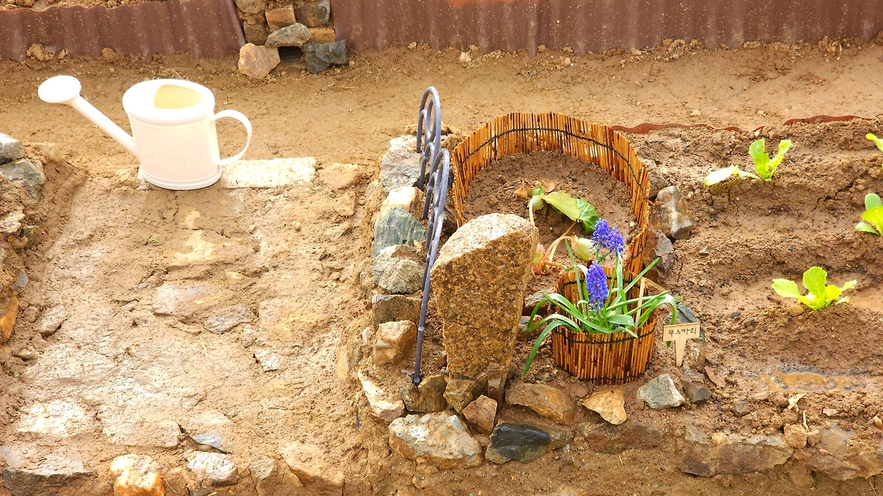 텃밭 두둑 위에 그려진 그림