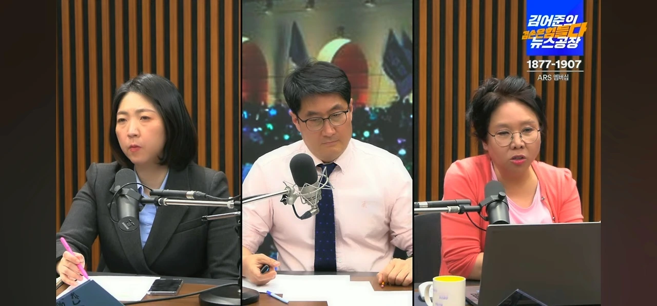 겸공특보, 좌측부터 장윤미 변호사, 홍사훈기자 겸공특보, 노영희 변호사